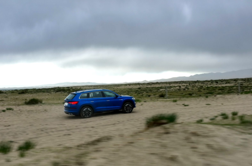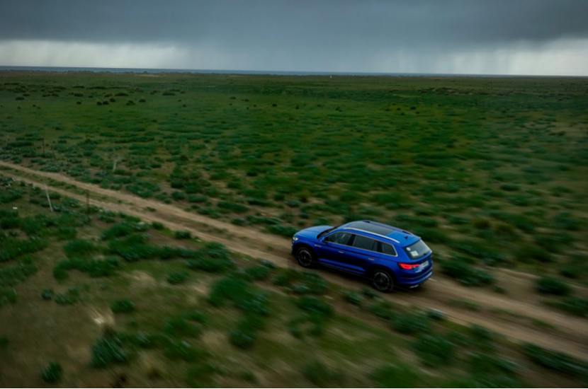 不得不引人注意的是整台车在砂石路面行驶时的静谧性,全新柯迪亚克前挡风使用静音玻璃膜、车门双层密封,大面积铺设吸音棉和隔音垫、车体空腔隔断技术、动力吸振技术等多项隔音技术。这些技术的运用使得我们在这种路面行走时,卷起的碎石打在轮拱像是击打于海绵上,轮胎挤压砂石产生的声音几乎被隔绝掉,车内并无明显不适,车速越来越快,尘土飞扬。