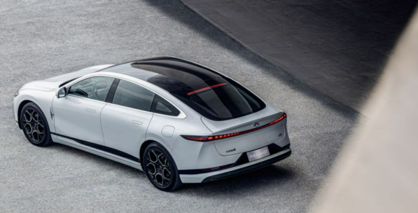 再比如车身侧面部分,隐藏式门把手与无边框电吸门相搭配,虽然能够让产品变得简洁且有未来感,但也容易显得单调,所以为了提高侧面的辨识度,设计师增加了一条的黑色下腰线,型面自然流动的交错光影与自然形成的上腰线形成了强烈的明暗对比。