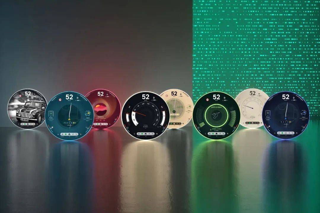在数字化体验上,擅长玩乐的MINI将“化繁为简”和个性化的本领发挥到极致,令传统驾驶界面提升至全新的高度。下一代MINI家族车型共推出8种“体验模式”——初始模式(Core)、卡丁模式(Go-Kart)、节能模式(Green)、放轻松模式 (Balance)、怀旧模式 (Timeless)、自定义模式(Personal)、派对模式(Vivid)以及游牧模式(Trail)。每种模式都有自己特定的用户界面设计。更令人叹为观止的是,整个仪表板可通过“光之魔法”呈现出与所选体验模式相匹配的颜色和图案。叮!此处还有一个小细节,每种体验模式都会发出一种独特的声效,表明该模式已被激活。