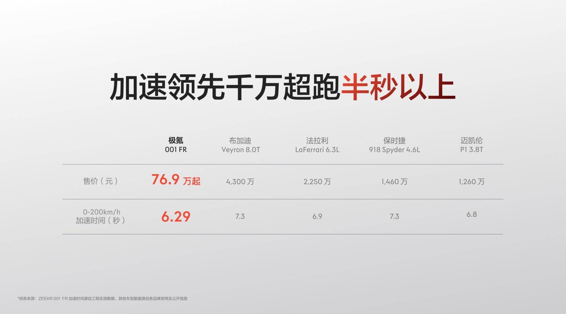 极氪001 FR的0-200km/h加速仅需6.29秒