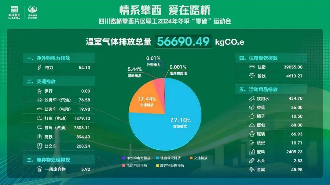 本次运动会严格按照“源头减碳、过程管控、末端中和”的思路,把绿色低碳贯穿全过程。在运动会的筹备、执行阶段,采取了大量节能降碳措施,包括绿色出行、减少一次性用品、垃圾分类回收、节约用水用电、无纸化办赛等,有效降低了活动碳排放。