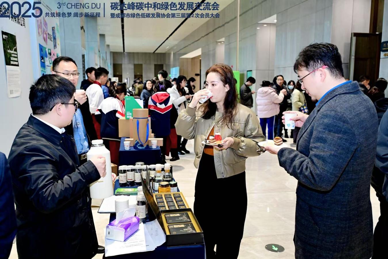 会议现场还设置“双碳”主题集市,集中展示碳中和产品及低碳环保设备,特别是协会主导开发的全国首款 "碳中和" 火锅底料、蒲江雀舌茶叶及西部首款 "碳中和" 草莓等创新成果。通过落实市政府 "零碳券" 补贴政策,协会联动会员单位及相关机构开发特色绿色产品,以生态振兴助力乡村振兴,为促进企业绿色转型提供创新范例。