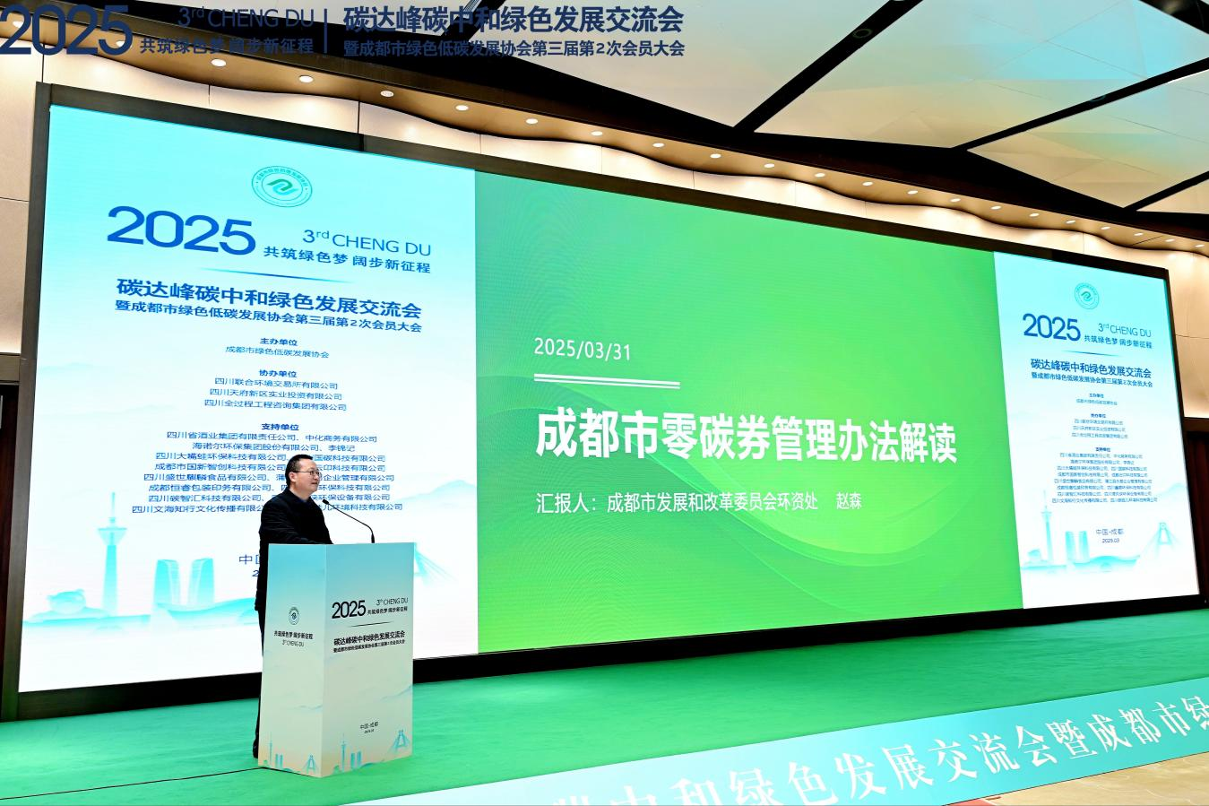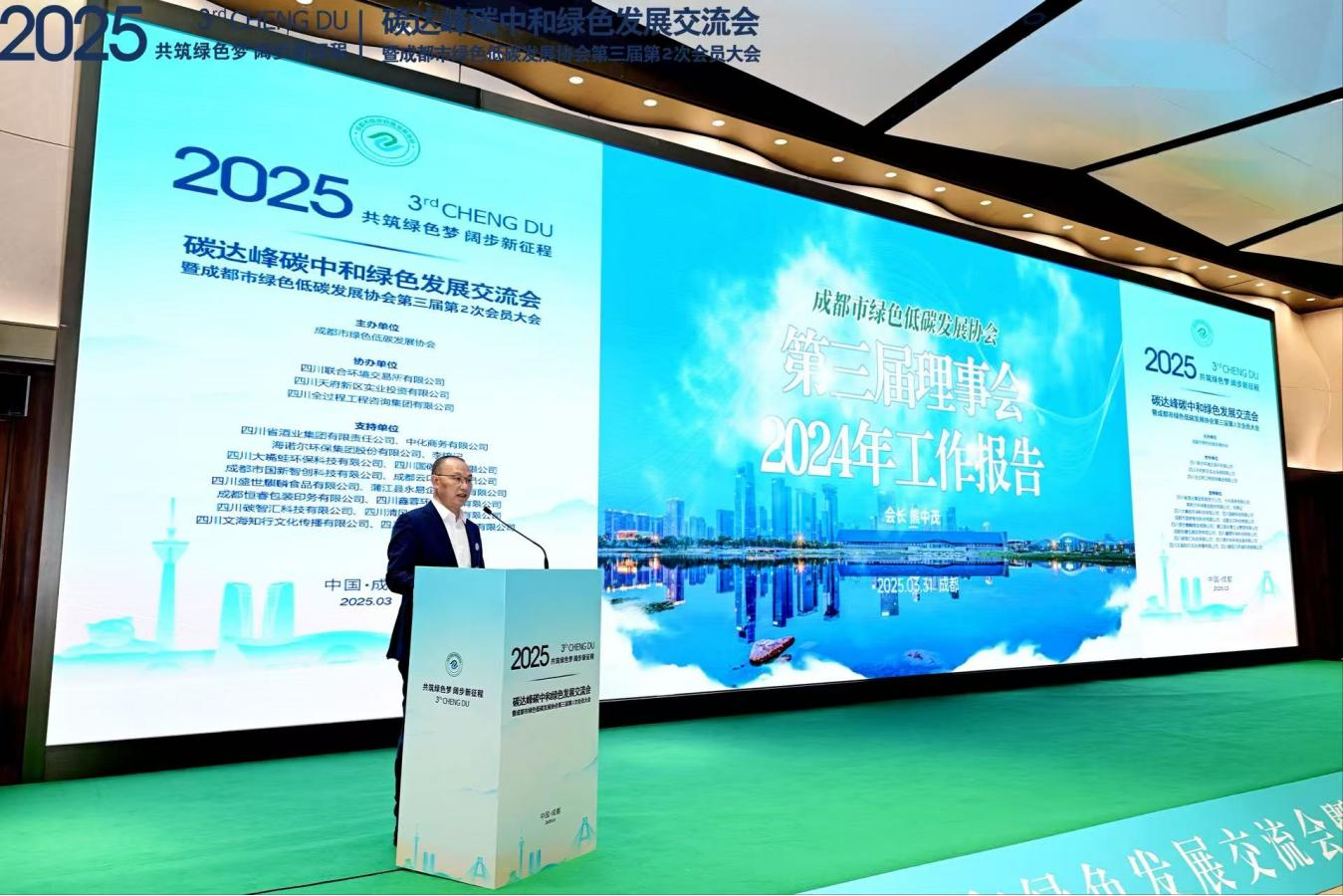 2025年04月01 17:35 来源:蜀锦传媒3月31日,以“共筑绿色梦,阔步新征程”为主题的2025碳达峰碳中和绿色发展交流会在成都天府国际会议中心成功举行。此次大会不仅是成都市绿色低碳发展协会第三届第2次会员大会的重要组成部分,更是政企协三方共同探讨绿色转型新路径、推动可持续发展的关键平台。