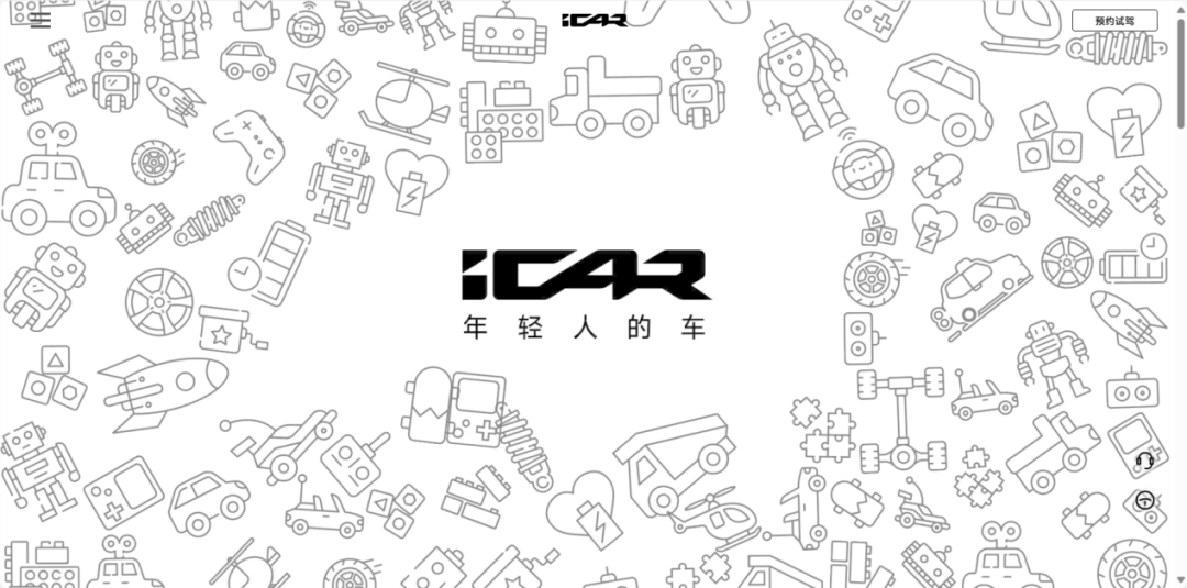 基于这样的市场环境,让汽车变成“玩具”,未尝不是一种新的尝试。iCAR品牌可以说生而不同,这个被称为“奇瑞小米”的品牌,事实上也是由智米团队打造。他们在造车时融入了非常多的互联网思维,比如在iCAR官网首页,这个团队做出了玩具化的页面,非常好玩。