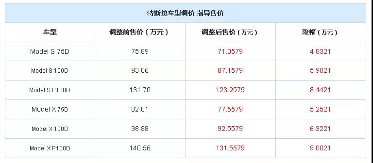 特斯拉目前在国内的车型售价会随之调整,涉及到Model S以及Model X两款车型,综合降幅在4.8321万-9.0021万元之间。