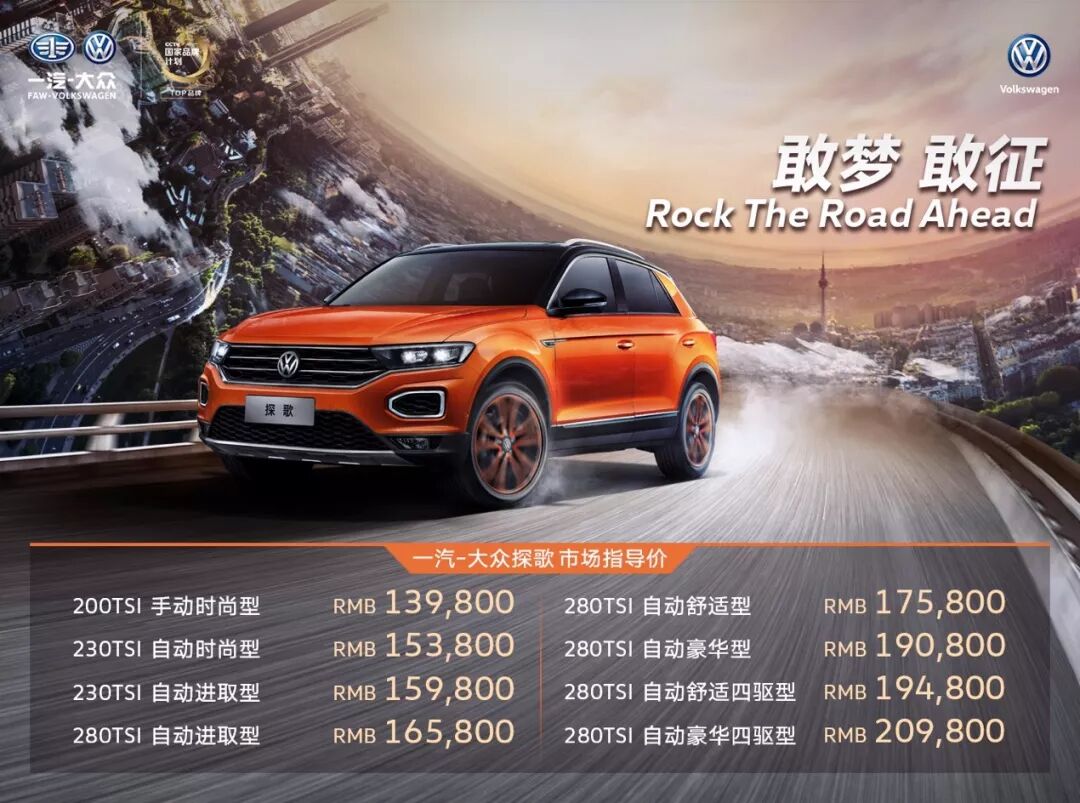 但是当探歌售价放出的时候,人们复杂的情感又开始酝酿了。13.98万-20.98万元的售价对于一款紧凑型SUV来说,似乎足以引起消费者的购买欲。但是这是一台刚刚跨入紧凑级别的SUV,也就是说它的空间比主流的紧凑级SUV要小不少,也就是俗称的低半个级别;即便有四驱系统可供选装,但是排量最大仅仅只有1.4T,甚至都没有使用大众集团最新的1.5T发动机。正如当时7.5代高尔夫国产后没有同步全球车型的发动机一样,不免让人感到唏嘘。