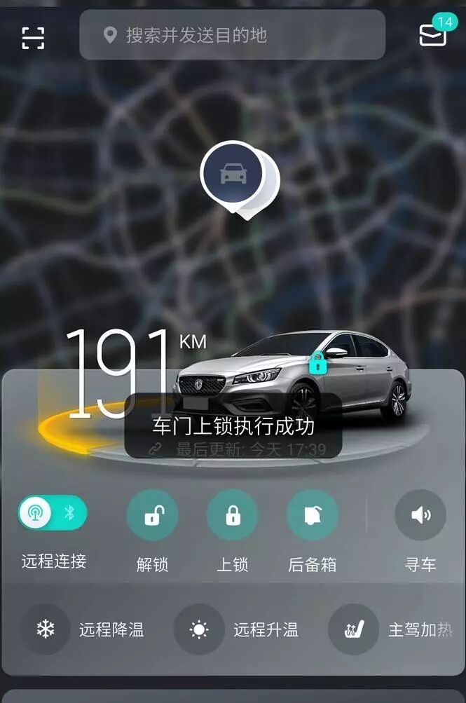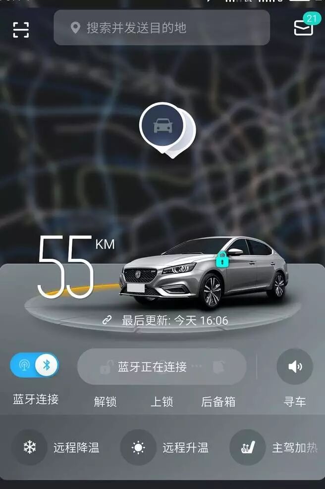 名爵6自带的远程开启空调,在人还在车外的时候就可以打开车内的空天,进行提前降温。
