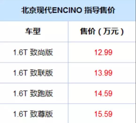 现代ENCINO于昨天正式上市,新车定位于款小型SUV,共推出4款配置车型可选,售价12.99-15.59万元。