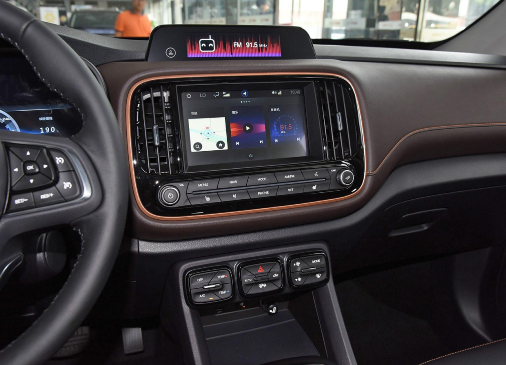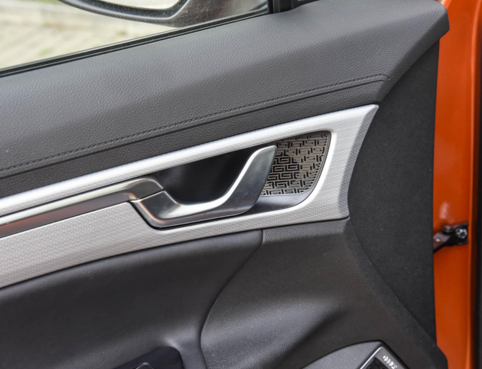 传祺GE3的内饰中控采用了对称式设计,整体布局层次分明,中控台、前后门内饰板等部位采用了大面积搪塑材质进行包覆,与帝豪GSe相比有一定差距,好在经过仿皮材质的点缀,为传祺GE3的内饰增添了些许质感。