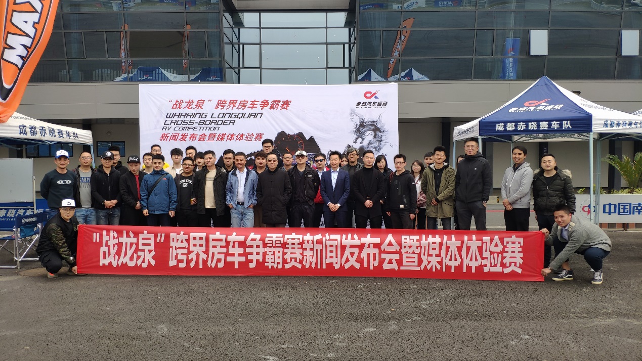 3月12日,成都赤晓汽车运动在南山汽车文化园举行了“战龙泉”跨界房车超级争霸赛新闻发布会。四川省汽车摩托车运动协会主席曾明、成都南山置业有限公司常务副总经理朱军强、成都赤晓汽车运动文化发展有限公司总经理陈晋生以及二十余家主流新闻媒体共同出席此次新闻发布会。