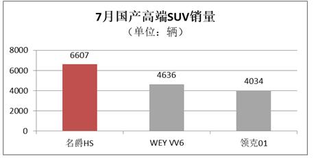 国产高端SUV竞争进入下半场!名爵HS 7月热销近7千 力压领克01、VV6