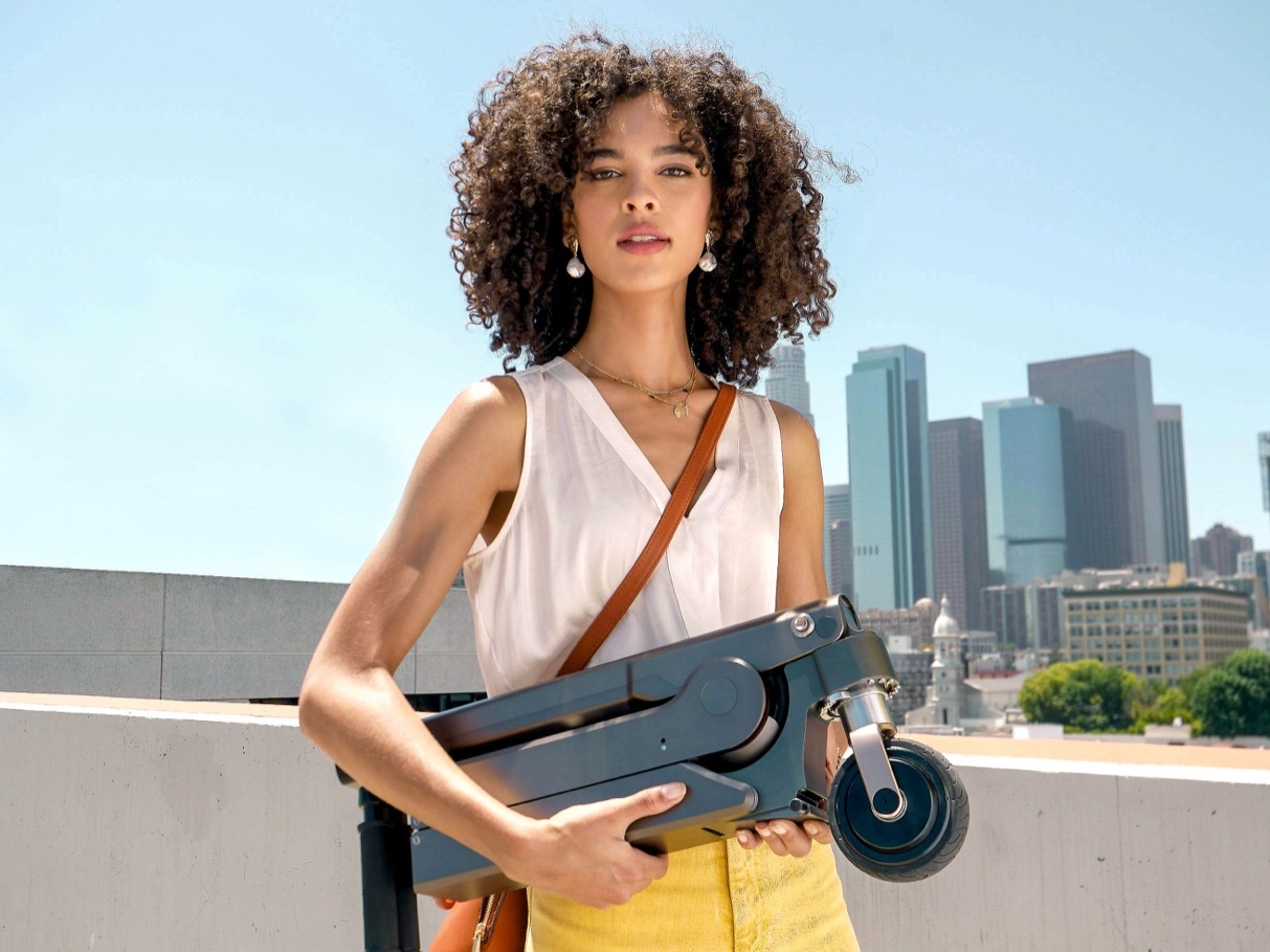 其次是全新升级的设计。一方面,该踏板车还采用三段折叠的独创的设计风格,体积小巧,重量仅为7.7kg,为目前同类产品中最轻便的车型。另一方面,相较于采用前轮驱动方式的2017年款概念踏板车,此次发布的全新车型则调整为后轮驱动方式,车身重心转移至后方位置,可同时提高车身稳定性及操控性。此外,该款踏板车车身正面配备两个曲线型LED前照灯,背面安装两个LED尾灯,在增添时尚感的同时提升夜间驾驶的安全性。