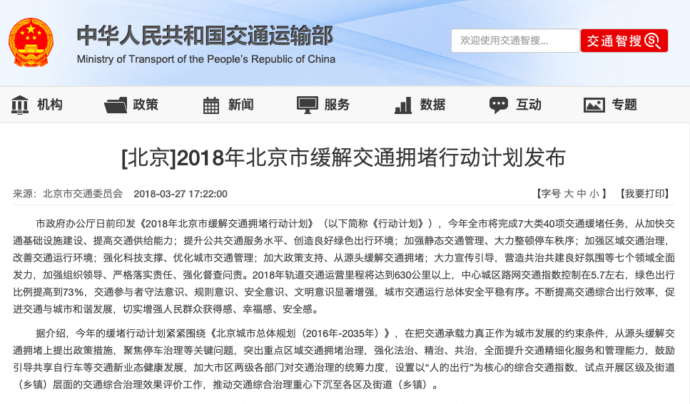 (2018年北京缓解交通拥堵行动计划)
