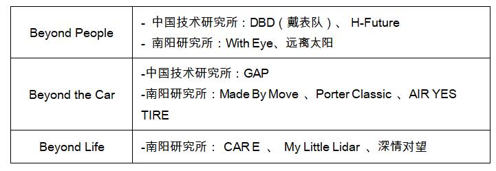 跻入决赛的三个中国技术研究所小组分别带着各自作品在“Beyond People”和“Beyond the Car”领域进行角逐,与大家分享其创意想法。