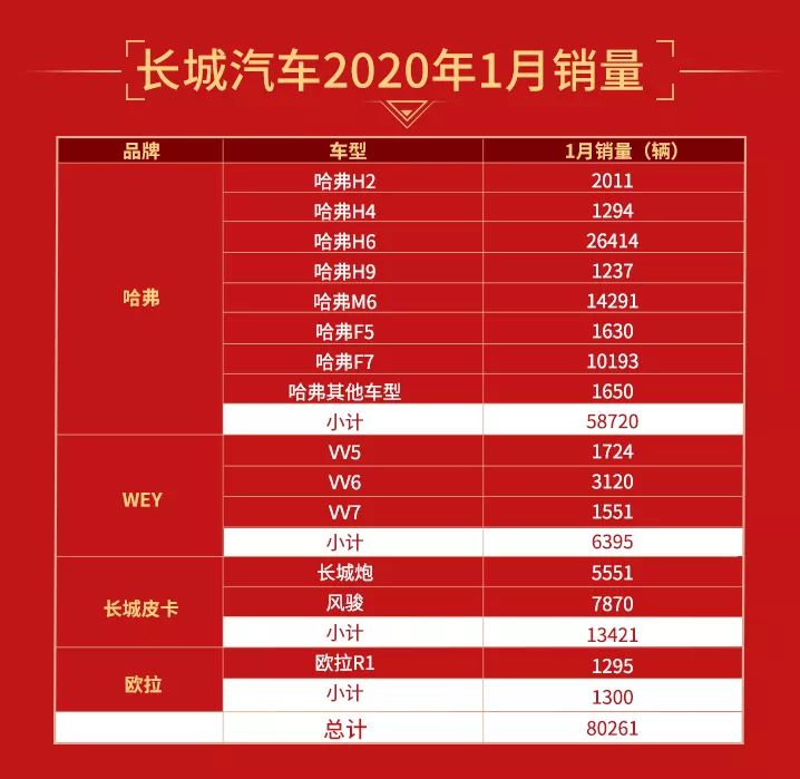 再夺SUV销冠!长城汽车1月销量超8万辆