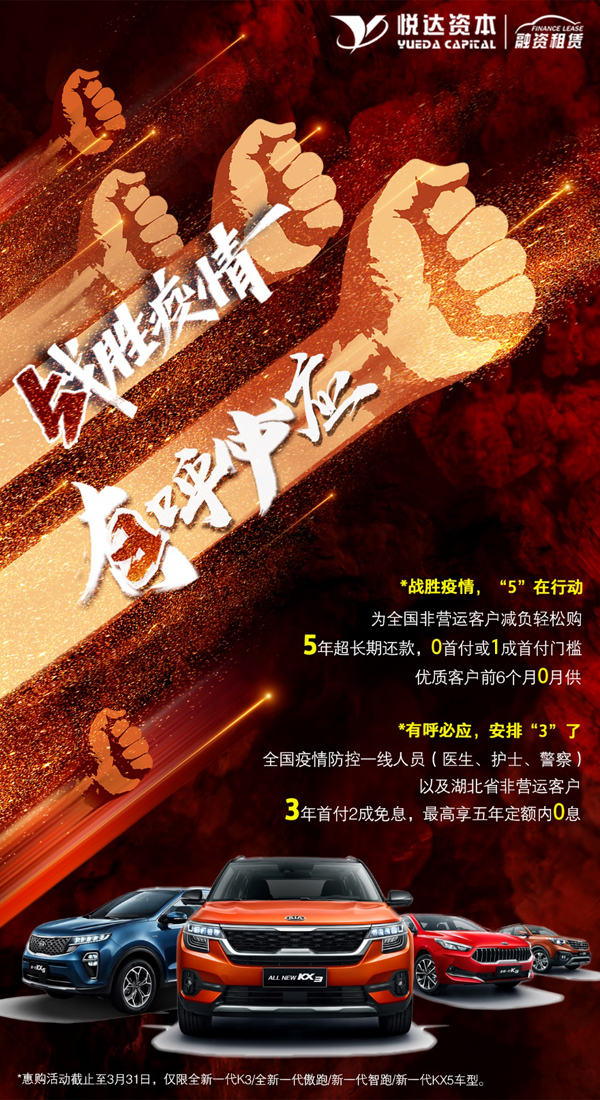 疫情无情人有情,东风悦达起亚始终以社会责任为先,以“客户第一”为己任,携手与东风金融等公司以实际行动助力经销商,回馈消费者,为全国“抗疫”贡献产业力量。