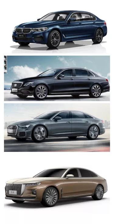 各豪华品牌对品牌形象的诠释,从官图中也能看出,如宝马5系→街道→驾驶;奥迪A6L→黑夜→科技未来;奔驰E级→城市CBD→大气豪华