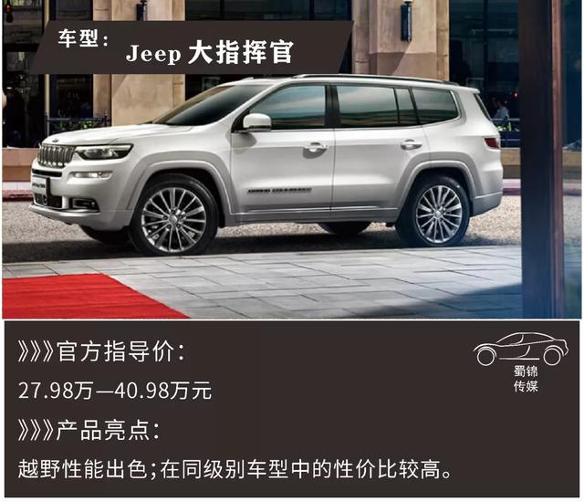 蜀锦传媒推荐Jeep大指挥官的原因在于,Jeep旗下车型相比竞品车型,在产品层面相对偏向于越野通过能力,因此Jeep大指挥官相比竞品车型,面对复杂路况的通行能力更好,这就让其产品的使用场景更丰富,毕竟七座SUV不应只服务于家庭,诗和远方同样重要。