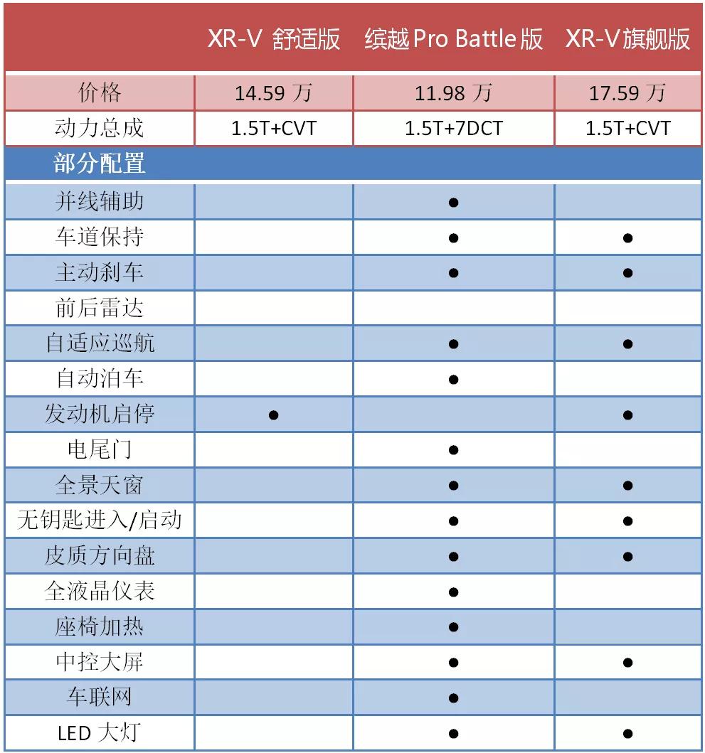 缤越Pro相比缤越的改变并没有特别大,主要是配置层面的全面提升。换句话说,缤越Pro相比缤越,加量不加价,所以性价比就更高了。这样一来,面对XR-V等对手时,缤越Pro就有了更强的战斗力。