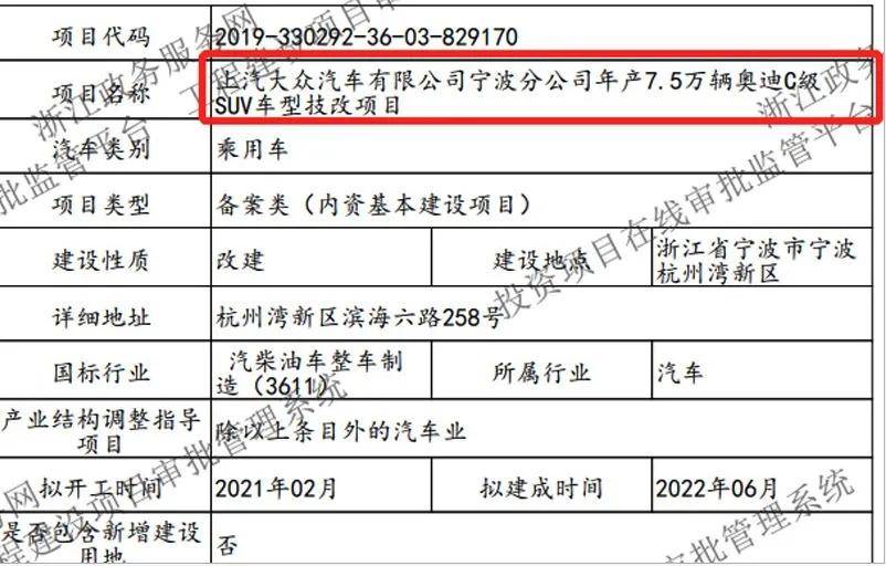 日前,有国内媒体曝光了一组上汽大众汽车技改项目文件,文件中显示,上汽奥迪中大型(C级)SUV车型将落户宁波工厂二期工厂,年产能达7.5万台。而目前奥迪旗下汽/柴油中大型SUV仅有Q7、Q8两款车型,所以可以肯定就是二者之一。