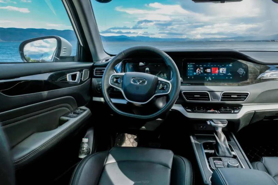 炫界的内饰猛地一看就更不像10万元以下的车了,毕竟双10.25英寸的屏幕足够唬人,挡把的样式也很精致,方向盘还是两幅式的。不过为什么是猛的一看呢?因为细看之下,双联屏的连接面板稍微显得有些廉价,不过这可是只要7、8万元的车,全液晶仪表都给你安排上了,如果再抱怨细节就有些过分了。