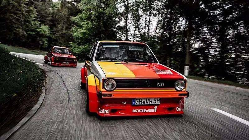 接着1年后,第一代高尔夫GTI亮相,它相比普通版高尔夫有了更具运动气质的三幅式竞技方向盘,时速表左侧的时钟也换成了转速表,油温表也出现在了第一代高尔夫GTI车内,还有一直延续至今的格子布座椅,不过最令人兴奋的莫过于高尔夫球形态的换挡杆,绝佳的手感之外,它似乎还汇聚了高尔夫GTI的灵魂。另外,第一代高尔夫GTI搭载了一台1.6L发动机,百公里加速仅需9.2秒,在当时,这就是小钢炮。可以说高尔夫GTI的诞生,让普通国民车也有了更强大的运动基因,它也成了运动小钢炮的引领者。