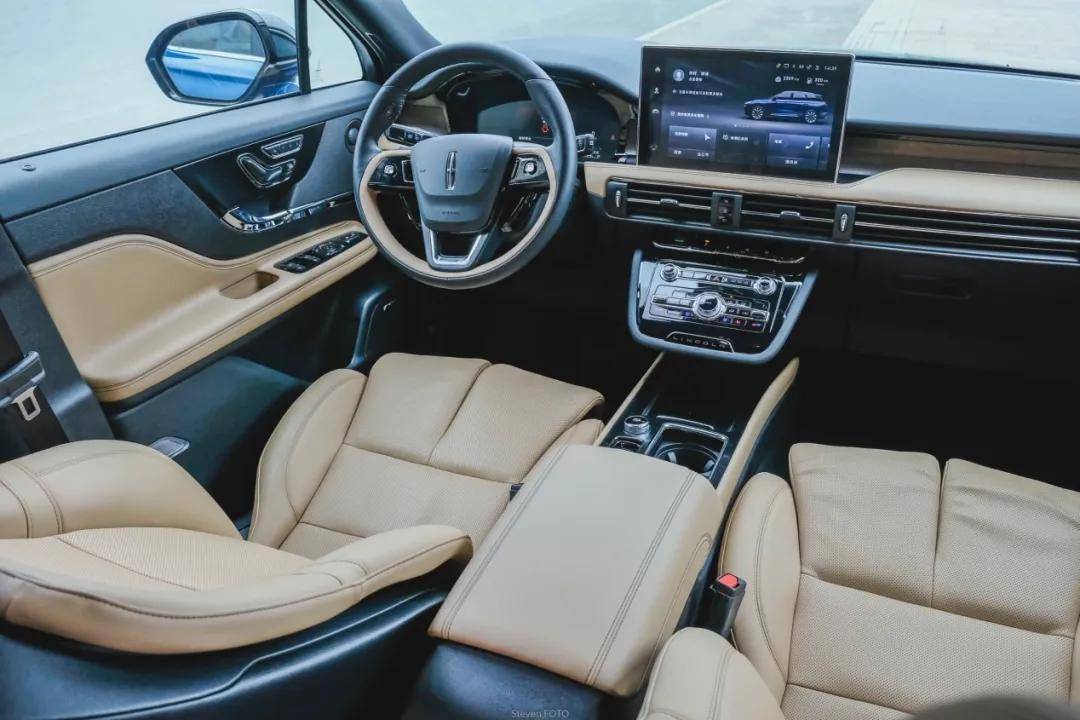 换代之后林肯将中控台进行了极大的简化,在收窄中控台的同时还减少了一些物理按键,只保留了空调、座椅通风这样的控制按钮,只不过一些功能被过于隐藏不太好找,这一点后面会说到。如果要说一些不协调,面积过于巨大的中控屏幕是其中之一,虽然带来了良好的显示效果,但是在整个内饰当中过于突兀。