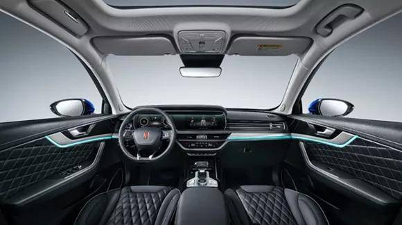 HS5的豪华感来自于几个方面。首先是外观设计层面,红旗HS5车身尺寸达到了4760/1907/1700mm,轴距为2870mm,同时直瀑式与大灯相连接的进气格栅,发动机舱盖上红旗的车标,尾部贯穿式的镀铬饰条,都为外观赋予了大气的姿态。内饰层面,红旗HS5的豪华感来源奢侈的用料,座椅填充物较为柔软,并采用真皮加翻毛皮的包裹材质,乘坐舒适性出色。内饰采用大面积皮质覆盖,并且采用菱形的缝制工艺,加上多色的车内氛围灯,营造了出色的豪华感。
