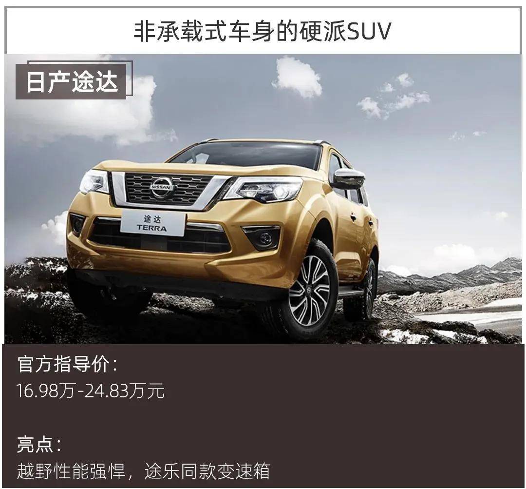 20万元价位区间的合资硬派越野车,除了日产途达还有其它更合适的选择吗?而日产途达也名副其实,带机械牙嵌式后的差速锁、能放大2.7倍扭矩的低速四驱、O型结构的非承载式车身,让途达拥有强悍的复杂道路通行能力。