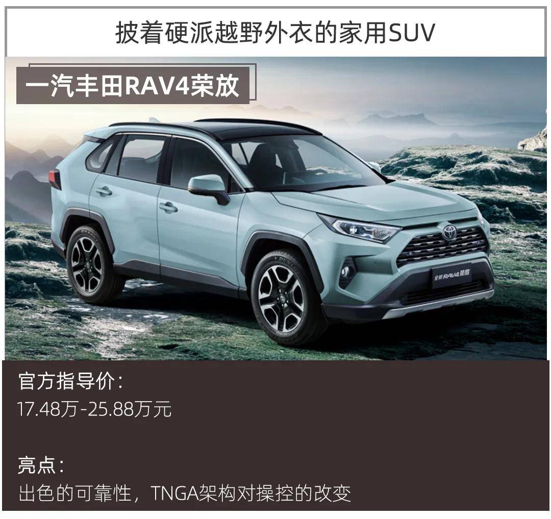 丰田RAV4荣放从1994年问世以来,就主打家用SUV市场,它与本田CR-V可以算是开启中国家用SUV浪潮的功臣,所以当这样一辆主打家用市场的SUV,改款后换装硬派外观,让市场感到了惊喜。但是它还是保留着家用舒适性的基因,座椅填充物柔软、内饰软性材质覆盖较多、加速平顺不突兀、悬挂能抵消路面的颠簸,同时在TNGA架构的加持下,车辆拥有轻量化与低重心的优势,操控感与燃油经济性都有所提升。