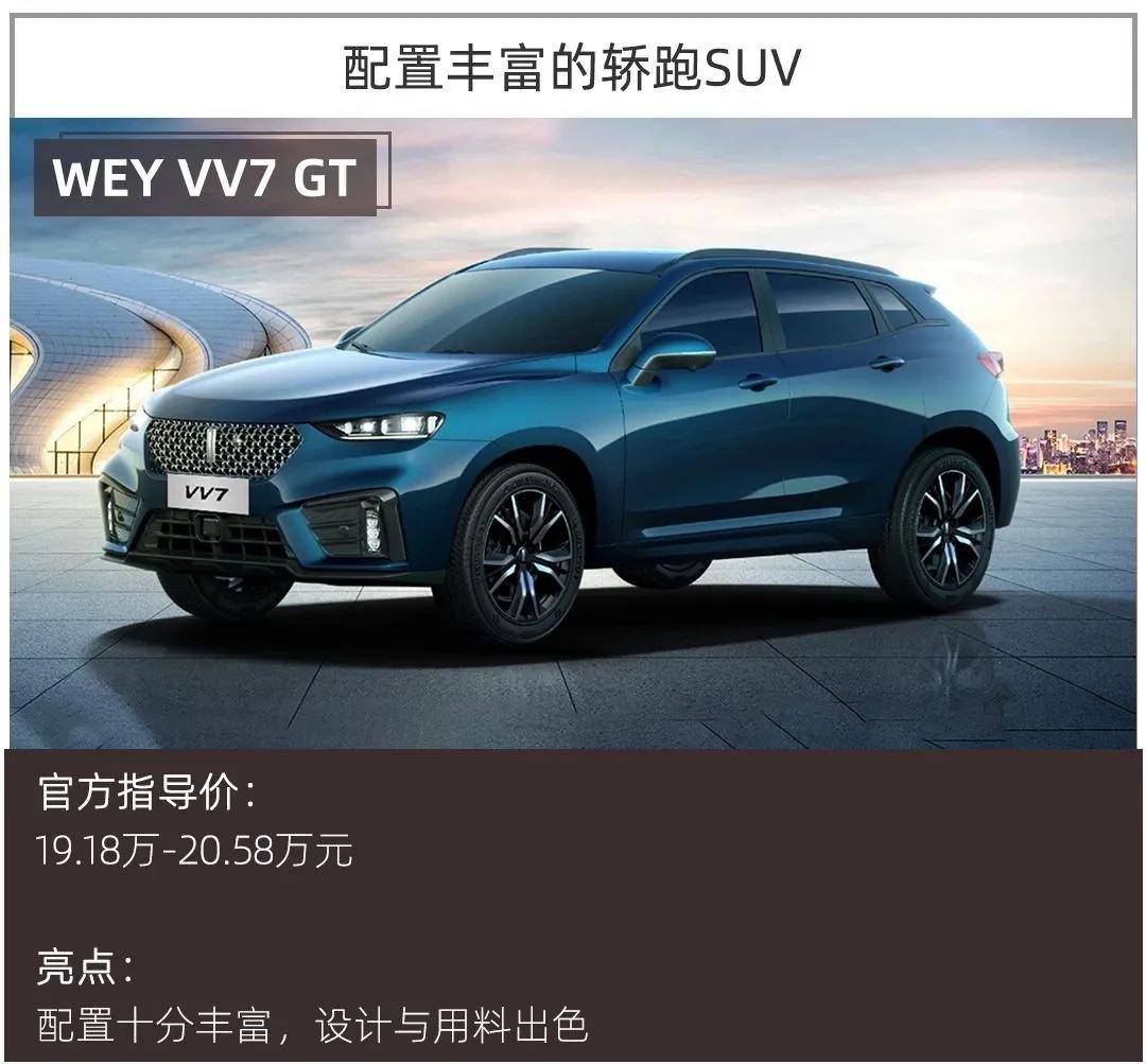配置、空间、设计绝对是中国消费者购车的主流需求,但要同时满足这三点需求,还得将价位限定在20万元左右,市场中可供选择的车型并不多,而WEY VV7 GT则是其中不可多得的选择之一,可以一句话形容该车“配置丰富的中型轿跑SUV”
