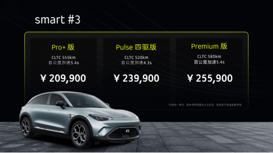 不得不承认,当smart品牌全面转型电动化后,它抛弃掉了历史包袱,反而与大家心中的都市精致出行形象更为接近。这样说的原因在于,smart在燃油车时代用小尺寸满足了小部分人的需求,而电动车时代smart加大了车身尺寸,虽然相比竞品来说仍不算大,但在留住原有群体的基础上,更能符合大众需求。基于此,smart历史上最大的车型全新smart精灵#3来了,共发布4款车型,售价区间为20.99-28.99万元,抛开限量1999台的顶配BRABUS性能版,售价区间为20.99-25.99万元,至于这个价格贵不贵,我们可以看看产品力。众所周知,smart是由梅赛德斯-奔驰进行设计,而精灵#3我们认为它相比精灵#1更能体现出奔驰设计的功力,因为它相比精灵#1的灵巧多了一丝运动氛围。它的正面车身宽高比达到1.19;车轮车高比达0.45,轮间车轮比达到黄金比例的3:1,这些数据其实是标准的豪华运动车型比例,因此精灵#3兼顾了精灵#1的灵巧动感,也拥有了一种蓄势待发的运动美感。所以,我们认为它的定义更偏向于运动旅行跨界车,而不是城市SUV的定义。精灵#3虽然是smart史上最大的车型,但实际车长仅为4400mm,并不算大,但轴距达到了2785mm,相比较欧拉闪电猫2870mm的轴距与4871mm车长,其实能够看出精灵#3的出色空间利用率。内饰方面,精灵#3的内饰设计在精灵#1上进行升级,保留了整体内饰布局,而三幅平底式方向盘、无框车门、直瀑式中控大屏同样没有缺席,但是将两侧空调出风口从圆形换装成方形,并在座椅上新增了铆钉设计,让车内的运动氛围得到了提升。同时,车机系统也同步进行了微调,其UI形象从狐狸改为猎豹,更运动的UI也更契合新的设计造型。当然,smart精灵#3不仅仅是设计上偏向于运动化,在动力方面smart精灵#3不论单电机版本还是双电机版本的性能也符合运动的定义。其双电机版本的最大功率达315kW,最大扭矩达到543N·m,能够带来4.3秒的百公里加速成绩,而单电机版本的最大功率达200kW,最大扭矩达到434N·m,百公里加速5.4秒也不算弱。除了强悍的动力储备外,smart精灵#3还有着50比50的极致配重比以及5.5 米的最小转弯半径,这两项数据让它的麋鹿测试成绩达到了82.7km/h。出色的操控加上强劲动力,意味着smart精灵#3会是一辆好开的车,也符合运动化的外观设计。聊完了smart精灵#3的产品特点,我们来谈谈它的哪款配置最值得买。首先排除顶配BRABUS性能版,它作为限量款车型大概率被抢购一空。而剩下的两驱低配(Pro+版)、两驱高配(Premium版)、四驱(Pulse版)三个版本中,我们最推荐四驱版,因为它23.99万元能增加1.1秒的提速能力,动力超过了许多性能车,而且在配置层面也拥有64色环境氛围灯、车内香氛装置、后排侧隐私玻璃等越级配置,整体性价比比较高。除了四驱版外,两驱低配车型的可买性也极高,20.99万元的售价相比竞品有优势,同时还配备了L2级智能驾驶辅助系统、8155芯片、行车记录仪,手机无线充电、全景天窗等配置给足了诚意。而两驱顶配25.59万元的售价主要提升续航、音响、灯光等配置,总体的性价比不高。蜀锦畅言:smart与MINI作为燃油车时代,城市代步小车的代表品牌,早年间皆宣布开启电动化转型。但是从目前来看,MINI的车型还在路上,而smart显然走得更快更大胆,布局了一款城市代步SUV与一款城市潮玩轿跑车型,并且用较高的性价比满足了消费者的需求。明年smart还将推出一款新产品,进一步完善产品布局的同时,也会给消费者带来更不一样的惊喜。