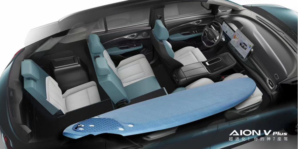 为什么称之为神7座驾?首先,它是一套移动的7居室。GEP2.0纯电专属平台让AION V Plus轴距达到了2830mm。充裕的乘员舱空间,能够实现三排座椅满坐7人情况下,二排的大长腿还有1拳的腿部空间;第三排座椅角度甚至能支持25°无级调节,让1米9的大前锋也能葛优躺。