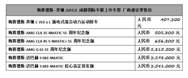 2022年是AMG诞生55周年。梅赛德斯-AMG在本次车展带来梅赛德斯-AMG CLA 35 4MATIC、梅赛德斯-AMG CLA 45 S 4MATIC+、梅赛德斯-AMG G 63三款55周年纪念版车型,邀志同道合者“与吾为伍”,共庆55载辉煌历史,其厂商建议零售价分别为人民币502,800元、656,800元、2,815,500元。