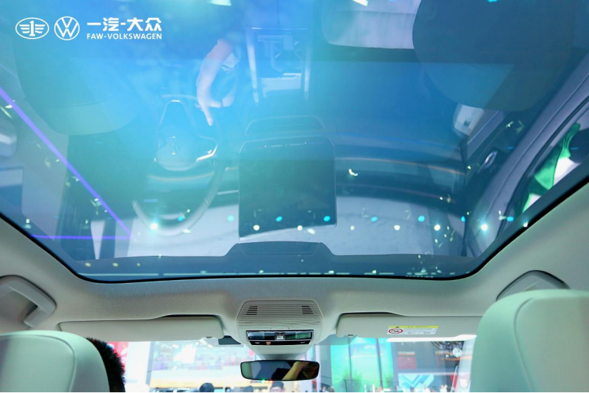 ID.7 VIZZION采用了Sky view 智能光感天幕,超大景观空间视野,在满足视觉空间感同时,还可以进行光幕调节,区别于以往遮阳帘的遮挡方式,采用触控调节天幕方式,提升科技感体验。这款天幕具备多个涂层,可以进行敏感变色调节,光幕开启时雾度大于95%,低辐射涂层与无涂层相比可以提升12%的热隔效率,紫外线隔绝达到率99%。