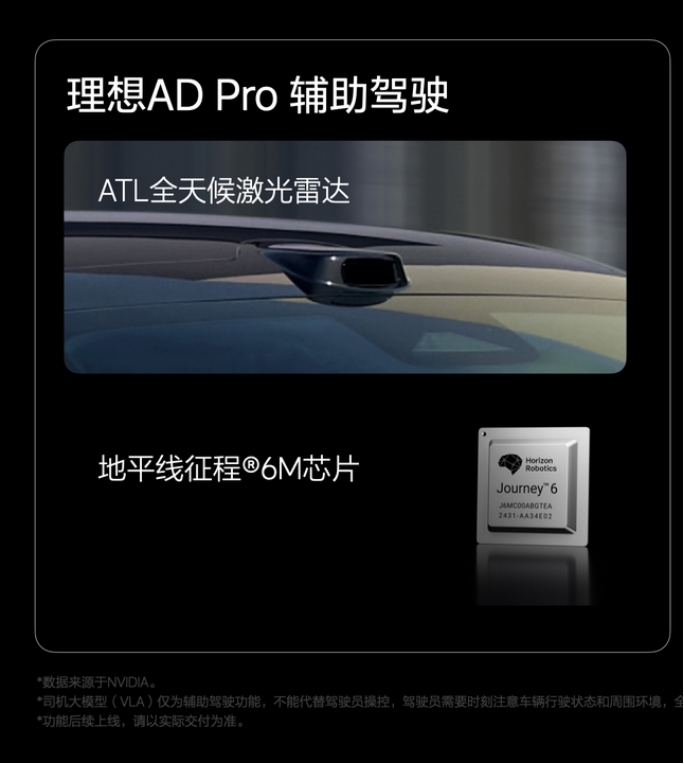2025年4月23日,理想汽车在上海国际车展正式发布理想L6智能焕新版,并宣布新一代理想AD Pro辅助驾驶全面升级搭载地平线征程6M,同时全系标配ATL全天候激光雷达,实现安全性能与辅助驾驶能力的全面提升。