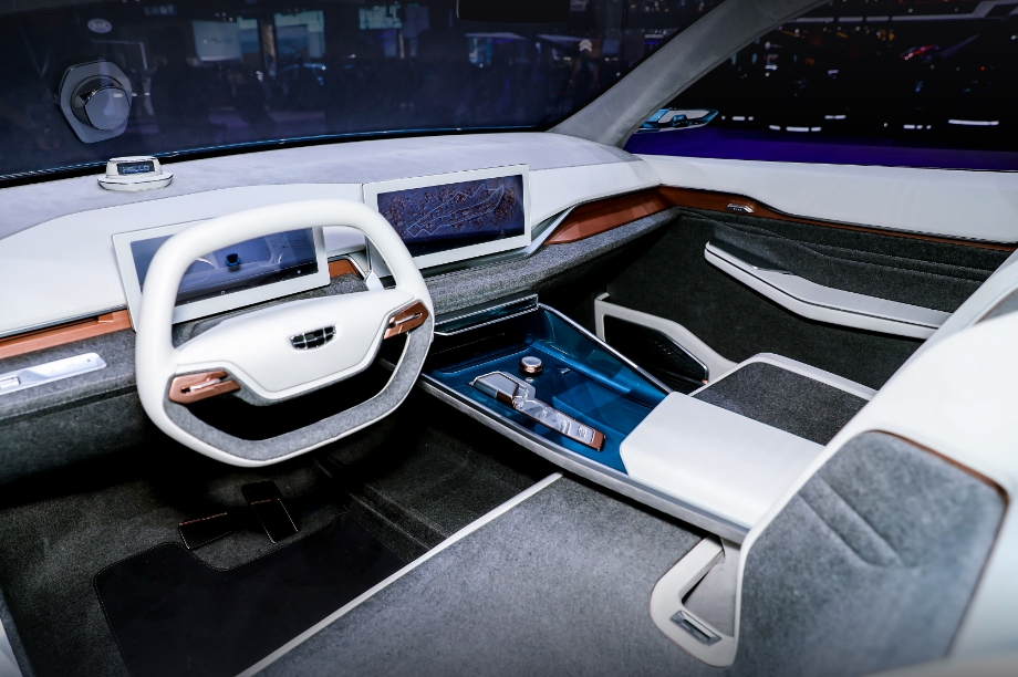内饰上,吉利PREFACE概念车通过精致的材料,简洁的饰面和明快的色彩,打造出简约、纯粹、静谧的内部空间。中控台采用了互锁扭曲面设计,配合整个内饰中巧妙强调的G回纹图案,赋予了Preface独特而自信的性格。还有半透明仪表板、HMI屏幕、六边形双幅式方向盘、金属雕刻按键、内衬几何图案的扬声器以及基于人体工程学的新式座椅等,精湛工艺铸就的细节均展现了对前瞻科技的具体诠释。