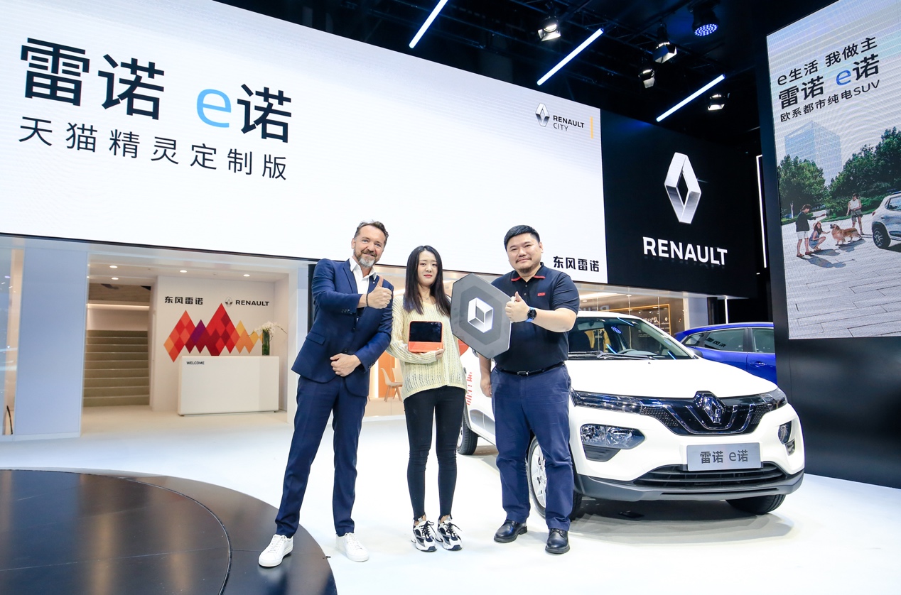 此外,雷诺 e诺还搭载了同级领先的在线导航和娱乐、4G WIFI热点和语音识别等功能,支持以手机APP进行远程车载诊断和控制,让用户能实时互联,随心e生活。同时,为了进一步满足年轻消费者智能化需求,东风雷诺与天猫合作打造的雷诺e诺天猫精灵定制版同步上市,并在车展现场为首位车主交付了钥匙。