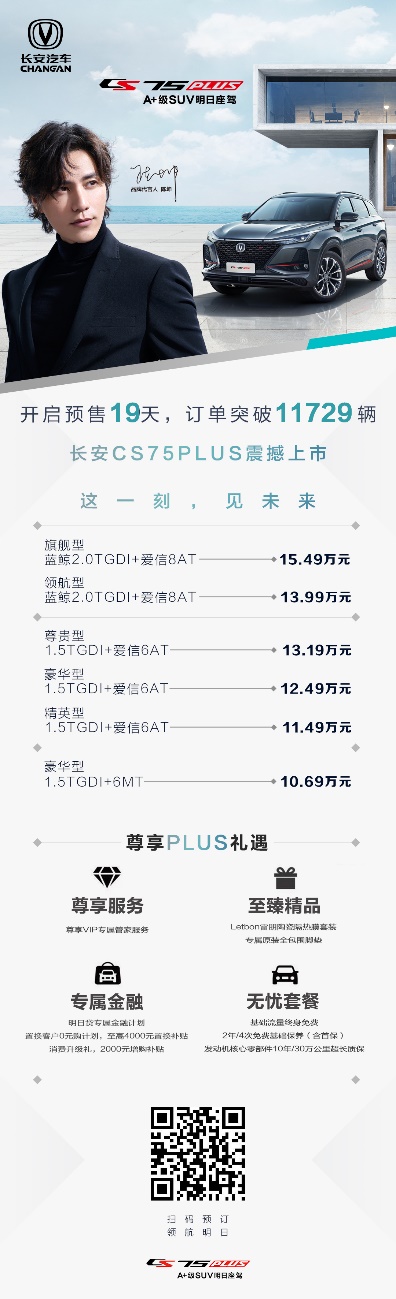 CS75PLUS的销售数据也印证了市场对这款车的看好,自8月16日开启预售至9月4日,短短19天预售订单就达到11729台,进一步印证了这款明日座驾的爆款潜质。