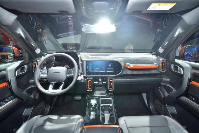同样诞生于"心潮力量美学"的内饰造型与外观的潮玩格调统一呼应,强调潮流个性氛围的营造。中控台的上下分层式设计是匠心独运的创作,不规则多边形大尺寸屏幕和撞色设计的映衬下,哈弗大狗的中控台设计带给乘员超前别致的视觉体验。