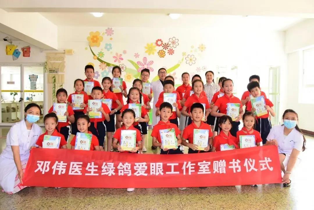 本次活动捐赠的是两本图书,其中《小象要戴眼镜啦?》近视防控的科普绘本是针对1-3年级年龄段的孩子,图书内容生动活泼、语言有趣,同时还会有道具的参与,在引起孩子兴趣的同时,可提高孩子对近视防控的自觉性与参与性。 针对4-6年级的孩子有另一本《近视综合防控手册》,这本书里的眼科知识会更丰富一些。两本图书都是眼科专家邓伟医生参与编著的。 那么,这样的绘本会给孩子们带来什么呢,邓医生说:“这次赠书很重要的一点是,希望不同年龄段、不同层次的孩子在近视防控上产生兴趣,同时自律。而我们也尽量通过一种新的方式让近视防控变得更有效,更有趣,更生动,使得孩子的参与感更强,而非医生和老师的单纯说教。这也是我们做爱眼工作室与赠书的意义所在。” 邓伟医生建议:2、其实在家我们也可以做“户外活动”,这里的户外是指的在自然光线下的暴露,如果没有办法到楼下、室外活动,可以根据自身条件,家里有阳台的可以在阳光不直射的时候进行阅读看书都是可以的。针对低年级的孩子,邓伟医生建议白天完成作业,晚上用耳朵听力的方式来代替眼睛学习,避免造成孩子的用眼负担。近视防控一定是因地制宜,但不管什么样的方式都需要医生、学校、家长甚至孩子本身的相互影响和作用。当前,中国近视化越来越幼龄化,如何防控就成了重中之重,而如绿鸽爱眼工作室这样的专业机构及其作出的相关努力就显得尤为重要。