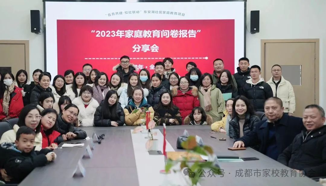 1月24日,成都市家校教育协会会长杨曦一行参与了成都市龙泉驿区东安湖学校举办的“2023年家庭教育问卷报告”分享会。此次活动旨在增进家长对孩子成长规律的科学认识,提升家庭教育的质量。分享会上,成都市家校教育协会生涯专委会副主任陈筱芝担任主讲嘉宾。通过对767多份包含8个方面27个问题的问卷数据的整理和分析,科学性的解读了家庭教育问卷报告的内容,为完善校家社共育、不断提升家庭教育认知提供了行之有效的建议。 杨曦会长在会上表示,成都市家校教育协会愿意与学校携手,共同推进家庭教育实际落地工作。他强调,家庭是孩子成长的第一个课堂,家庭教育对孩子的成长具有不可替代的作用。协会将积极发挥自身优势,与学校紧密合作,为老师和家长提供更专业的指导和支持。成都市龙泉驿区东安湖学校校长胡勇对协会的支持表示感谢。他表示,学校非常重视家庭教育,相信通过与协会的合作,能够进一步提升家长的教育理念和方法,促进学生的全面发展。此次分享会为老师和家长们提供了一个交流学习的平台,有助于推动家庭教育与学校教育的深度融合。相信在成都市家校教育协会和学校的共同努力下,家庭教育将迎来更加美好的明天。