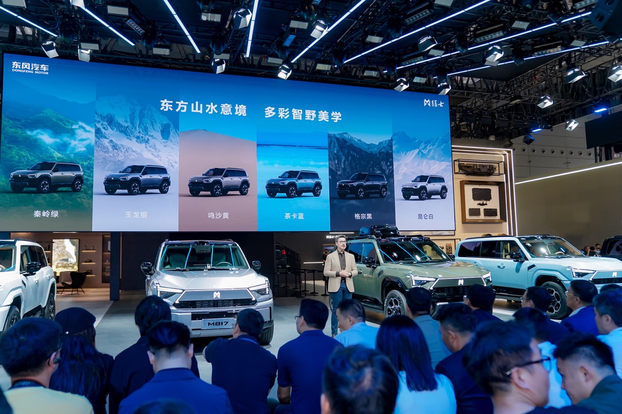 一车全场景,智野新体验。5月31日,第二十九届粤港澳大湾区国际汽车博览会盛大启幕。作为中国首个豪华电动越野品牌,东风猛士科技携智野新旗舰——猛士M817震撼亮相。继上海车展发布后,猛士M817首次公开内饰细节、空间尺寸等核心产品力,可城可野、智野双全,重新定义智野生活全新高度。活动现场,猛士M817造型设计天团核心成员,深入解读猛士M817的造型密码与色彩哲学。东风汽车全球造型设计中心执行总监尼古拉斯·岳表示:“猛士M817藏在车身线条里的醒狮威严,把中国五千年的文明底气,变成触手可及的生活温度。”谈及配色,东风汽车全球造型设计中心CMF设计专家卡米拉·克罗普则表示:“我希望通过材质与色彩的碰撞,让东方美学的山水意境,与东方越野文化完美融合。”此外,诺凡希品牌以猛士M817为灵感源泉,设计打造同色系高定时装与车型同台惊艳亮相,以时尚艺术诠释硬派工业美学。雄魂美学2.0:东方醒狮融入未来科技猛士M817雄魂美学再进阶,以东方醒狮为魂,以智能科技为刃,在硬派越野基因中注入智能温度。车身前脸,标志性狮吼格栅搭配M-LOGO灯,科技感中暗藏野性张力;两段式机罩如狮首昂立,彰显王者威严;侧身雄狮仿生体态延续家族化设计,双段式腰线如肌肉贲张,适配35英寸大脚胎,如雄狮狩猎之姿般强硬;止戈为武LED大灯完美还原古代兵器“戈”造型,日行灯菱形花纹来源于天下第一剑“越王勾践剑”,王者风范融入现代光影;剑指苍穹超红LED尾灯点亮后,呈现如出鞘利剑般的深红色光幕。猛士M817创新推出双保险杠造型,满足用户个性化选择需求。越野型保险杠直连副车架,传承硬核越野的力量感,以机械结构彰显可靠安全;城市型保险杠与车身同色,强化前脸整体感,更显科技年轻气质。先锋机甲座舱:极致舒享的移动生活空间猛士M817“内外兼修”,打造出极致舒享驾乘体验。猛士M817座舱横平竖直、中轴对称,搭配金属质感材质,塑造硬朗机甲风格;内饰91.2%软包包覆,包覆面积达32㎡,人体与座椅接触面大面积选用Nappa真皮,皮质细腻,顶棚及后备厢采用高档绒质面料,硬派越野也可触手皆豪华。细节设计方面,金属脉冲按键立体几何花纹设计,按压时手感沉稳有力,伴随呼吸式氛围灯光效,提升仪式感;飞航拨杆与前车顶灯集成一体,6个AUX顶置开关对应预留电源接口,兼顾操作便利性与改装潜力;运动腕表式旋钮选用金属质感材质打造,搭配金字塔纹理更显精致时尚,多主题表盘满足用户个性化选择,越野功能旋转切换,一键轻松掌握。猛士M817内饰皮革100%采用环保水性表面处理剂,从源头杜绝有害物质释放,关爱女性与婴幼儿健康;智能空调AQS传感器实时监测车外氮氧化合物和氨气浓度,自动切换内外循环以保证车内空气质量,负离子发生器配合PM2.5滤芯持续净化座舱空气;香氛由香奈儿供应商奇华顿提供,香瓶磁吸式设计且带余量检测功能,适配多场景用途。舒适性配置方面,猛士M817前排全功能Nappa真皮座椅,集按摩、加热、通风功能于一体,通风采用吸风结构,无感舒适体验,特别适合老人与小孩,更有3种座椅按摩模式,缓解疲劳、倍感惬意;丹拿18扬声器均使用独立功放通道直推,每个扬声器突破Hi-Fi级,打造沉浸式听觉盛宴;256 色无级氛围灯支持指尖滑动随心选色,可跟随音乐节奏动态变幻,以光影营造专属高级氛围。猛士M817还搭载-6℃至50℃压缩机冷暖冰箱,制冷速度快,并支持车机、语音、手机App等多种控制方式,整车下电后仍可持续工作最长24小时,随时畅享冰饮热食;6kW外放电功能可以同时带动电磁炉、电水壶、电烤炉等大功率电器,荒野探索与品质生活无缝衔接。山水意境配色:以东方色谱描绘壮丽山河六款外观配色和三款内饰主题,猛士M817将华夏壮丽山河凝于车身方寸之间。六款车身配色均采用调配独特,工艺复杂的顶级喷涂工艺。秦岭绿取意“中国龙脉”的三重森林绿,北纬28°的神秘色彩质感深邃;玉龙银复刻云南雪山的圣洁永恒;鸣沙黄撷取敦煌大漠的流动金浪,见证丝绸之路的文明韵律;茶卡蓝还原青藏高原“天空之镜”的极致空灵;格宗黑源自香格里拉秘境的山岩深邃;昆仑白取材昆仑山的冰川岩脉,以圣洁光芒诠释永恒之境。三种内饰主题与外观相呼应,迎松墨以墨黑为基础,暗绿为灵魂,沉静里透出东方生机;青山黛将墨绿交融,似《千里江山图》中远山层叠,青绿盎然;丹霞棕绘出独属于大漠的壮阔美感。魔术空间哲学:一车解锁N种生活方式移动卧室+装备仓库,猛士M817真正实现一车解锁N种生活方式。在车身尺寸方面,猛士M817车长5100mm,车宽1998mm,螺簧版车高1899mm,空簧版车高1919mm,搭配3005mm超长轴距,霸气硬朗,极为宽敞;空簧版地库模式下底盘降低45mm至1874mm,摆脱限高烦恼。猛士M817主副驾座椅靠背放倒,可与后排座垫衔接成1.7米标准双床,第二排座椅完全放平后,与行李箱地毯形成超2.1米的舒享大床,0.9米的成床高度让成年男子可轻松坐立,午间小憩或露营夜宿都可尽享舒适。储物能力方面,猛士M817后备厢容积828L,可同时收纳12个20寸登机箱、1个28寸行李箱及1个手提包,满足全家长途需求;二排放倒后,最大拓展容积达2112L,进深超2.1米的纯平空间可容纳自行车、滑雪板等大型装备;8个后备厢固定网扣配合座椅放平设计,无惧路途颠簸。传统越野出行,无人机常因占用后备厢空间、野外操作繁琐、信号不稳定等,成为玩家们“想带却无奈”的装备。猛士M8