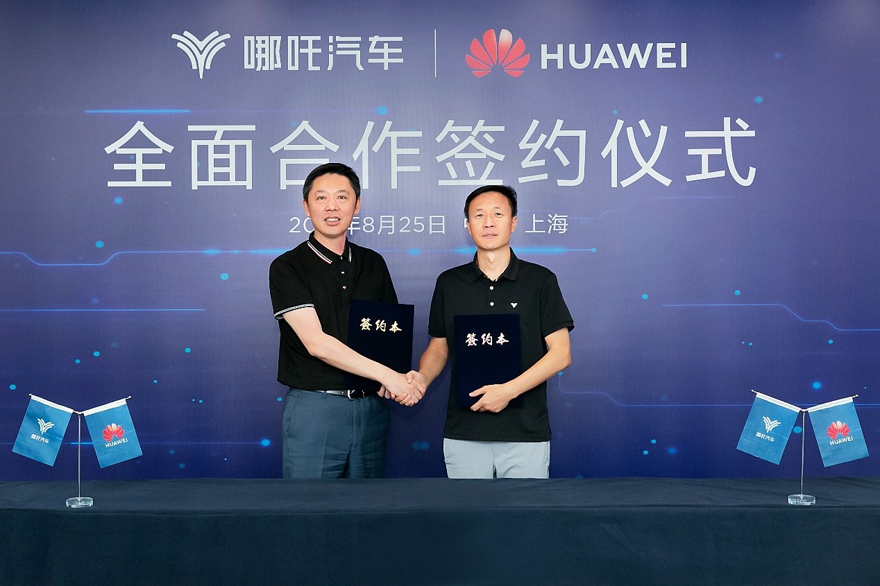 2021年8月25日,合众新能源汽车有限公司(以下简称“哪吒汽车”)与华为技术有限公司(以下简称“华为”)签署全面合作协议。此次合作,双方将秉承“资源互补、优势叠加、互利共赢、共促发展”的战略目标,依托各自领域拥有的产业资源优势和科技产权优势,形成长期共建共赢的合作关系,合力聚焦智能汽车生态领域的高进阶发展,持续推动哪吒汽车智能生态圈的可持续共进,用中国技术为构建智能汽车生态新格局注入全新动能。哪吒汽车联合创始人兼首席执行官张勇、华为智能汽车解决方案BU总裁王军分别代表双方公司签订合作协议。 【全面合作签约仪式现场:王军(左)和张勇(右)】根据协议内容,哪吒汽车与华为将基于物联网、云计算、大数据的信息化等关键技术,在智能网联、车载计算、智能驾驶、数字能源及云服务等领域展开全面合作。作为双方合作的首款车型,明年上市的哪吒S将应用华为MDC智能驾驶计算平台及激光雷达技术,深度聚焦智能驾驶新生态。哪吒汽车联合创始人兼首席执行官张勇先生在签约仪式上表示,“用中国技术,为世界造中国智能汽车。”华为智能汽车解决方案BU总裁王军先生同时在现场讲到,“华为将助力哪吒汽车,为消费者打造更好的智能汽车,为人们带来极智、愉悦、信赖的美好出行体验”! 此次哪吒汽车与华为强强联手,将助力哪吒汽车稳步夯实立足智能汽车时代的核心竞争力。而作为智能汽车新一代颠覆者的哪吒汽车与华为,亦将以此为基点,联合创领行业出行新态势,深化智能化战略,协同构建人-车-家-智慧城市的互联互通智能生态,用中国技术为世界提供更加智慧便捷的美好出行生活。