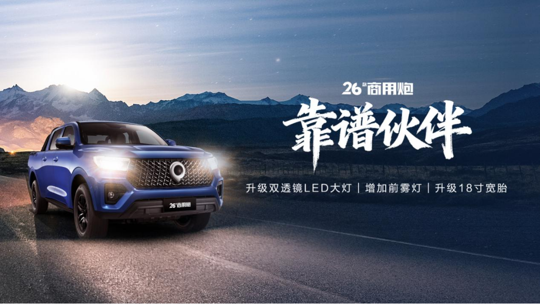 11月21日,2026款长城炮在广州车展焕新上市,引领皮卡品类价值再跃升!2026款商用炮官方建议零售价为9.98万元-14.28万元,2026款乘用炮官方建议零售价为12.68万元-16.88万元,2026款越野炮官方建议零售价为17.98万元-18.88万元。购车用户还可享多重上市礼遇,诚意满满。2026款商用炮用户可享6000元现金礼、5000元置换礼、3000元老友礼以及金融礼、服务礼五重大礼;2026款乘用炮可享受6000元现金礼、5000元置换礼、3000元老友礼以及金融礼、服务礼、互联礼六重大礼;2026款越野炮用户则可享10000元现金礼、10000元置换礼、5000元老友礼以及金融礼、服务礼、互联礼六重大礼。2019年长城炮诞生,开创乘用皮卡新品类,长城炮六周年全球累计销量突破75万辆,累计60个月销量过万,蝉联中国皮卡销量冠军,足迹遍布60余国。2.4T长城炮上市1年多,销量超3万辆,位居高规柴油动力销量第一。长城炮依托长城汽车全球研发布局、全球制造体系,诞生于重庆“四驱梦工厂”,基于全球智能专业越野“坦克平台”打造,以远超行业的制造标准成就品质传奇,让用户开上一台看起来有面、开起来有劲、用起来放心的冠军皮卡!作为多用途、多场景的超级品类,长城炮历经五次迭代升级,2026款长城炮实力再进阶,拥有同级领先的性能、更智慧的座舱、更丰富的配置!2026款越野炮原厂量产 成就同级性能超强的越野大皮卡2026款越野炮,基于坦克平台打造,是原厂量产、成熟可靠、同级性能超强的越野大皮卡。动力方面,新车搭载同级最强2.4T大排量柴油发动机,最大净功率135kW,峰值扭矩480N·m,在1500转时即可爆发最大扭矩,提速与爬坡响应更为迅捷;1500-2500转区间可持续输出最大扭矩,确保长距离爬坡时动力不衰减。与之匹配的是同级唯一的9AT变速箱,9个档位可达到8.843超宽速比,齿比更绵密,换挡平顺无顿挫。汽油版本也同步升级,最大净功率从140kW升级到160kW,最大净扭从360N·m升级到380N·m,动力表现更为强劲。在越野配置上,2026款越野炮升级博格华纳4A+MLOCK四驱系统,标配三把机械差速锁,进一步提升脱困能力。车辆提供经济、标准、运动、雪地、泥地、沙地、4L、岩石、专家九种全地形驾驶模式,轻松应对多样地形。原厂更配备9500磅无线T-MAX绞盘,救援脱困更方便、更安全。同时搭载坦克转弯、蠕行模式等硬核配置,还可选装K-MAN氮气减震、百路驰轮胎等,全面满足极限越野需求,让征途更加从容。配备越野信息辅助(越野APP),全地形3D场景沉浸渲染,可直观对车辆行驶状态进行监测,海拔、气压、姿态全掌握,更有离线指南针护航。原厂标配涉水喉、金属前后竞技杠,越野侧踏(连接在车架大梁上),3mm厚底盘护甲,强韧耐腐,扛压耐磨,全方位保护车辆。2026款乘用炮出厂即满配 跨山越海 从从容容2026款乘用炮,基于坦克平台,以乘用车标准打造,是动力同级最强,座舱同级最智能、最舒享的全球高性能乘用皮卡。户外不妥协、舒适不将就,助力用户勇敢拓展生活半径、追求不凡人生。新车搭载2.4T+9AT动力组合,汽油同样升级高功率,轻松应对多种驾驶场景。座舱方面,2026款乘用炮搭载Coffee OS 3智能座舱,是同级最智能的皮卡座舱。车内配备10.25英寸全液晶仪表与14.6英寸超大中控屏,中控大屏具备防眩目、防反射、防指纹三重防护,强光下依然清晰可视。系统拥有16G超大内存与128G存储空间,具备强大算力与图形处理能力,实现3秒瞬时开机,像顶级旗舰手机一样长时间使用不卡顿。新车拥有同级最全的手车互联,支持华为Hicar、荣耀互联、ICCOA Carlink及Carplay四大主流手车互联。搭载新一代语音系统,响应速度仅250毫秒,动态可见即可说,支持一语多意,能够高效执行一连串复杂指令。车机应用生态丰富,并支持OTA持续升级,常用常新。全系标配360环视与透明底盘系统,实时监测周围环境与车底路况,显著提升行车安全与预判能力。2026款商用炮更强承载 安全可靠 不惧挑战 成为用户的“靠谱伙伴”2026款商用炮,基于坦克平台打造,是同级动力最强、性价比最高、最成熟可靠的冠军皮卡。2026款商用炮拥有同级领先的柴油双动力组合——2.4T+9AT/2.0T+8AT,升级汽油高规动力。新车采用加宽加厚高强度梯形车架和3+2大尺寸钢板弹簧组合,能够高负荷重载,承载力居于同级领先水平。货箱尺寸1760*1520*540mm,标配防滚架、外绳钩及货箱宝,装载力强,商用场景适配度高。车身采用镀锌板材,整车历经1720小时强化腐蚀试验,远超国标,基本做到5年不锈蚀,10年车身不锈穿,防腐性能同级领先,水产渔货、沿海运输也不怕。原厂自带3吨牵引资质(2.0T车型为2.5吨牵引),可拖拽货运挂车、房车、摩托艇等,拓展多样生活。安全性上,2026款商用炮采用高强度笼型车身,梯形车架,并标配碰撞断油加自动解锁,全面保障驾乘安全。此外,2026款商用炮还升级了双透镜远近光分体LED大灯,提升照明亮度,提高行车安全性;增加前雾灯,雾天行车更安全。升级18寸轮毂与255/65 R18大尺寸轮胎,不仅提高整车姿态,胎宽加大更增强了抓地力,进一步提升行驶稳定性。本次2026款长城炮焕新上市,乘用、商用、越野三线并进,实力再进阶,以同级领先的性能、更智慧的座舱、更丰富的配置,助力每个梦想成真。2026款长城炮不只是宜商宜家的多用途车型,更代表着无限可能的生活方式,既拉得动经济,又装得下梦想,还扛得动责任。未来,长城炮将持续践行品类创新,不断夯实皮卡领导者地位,让中国