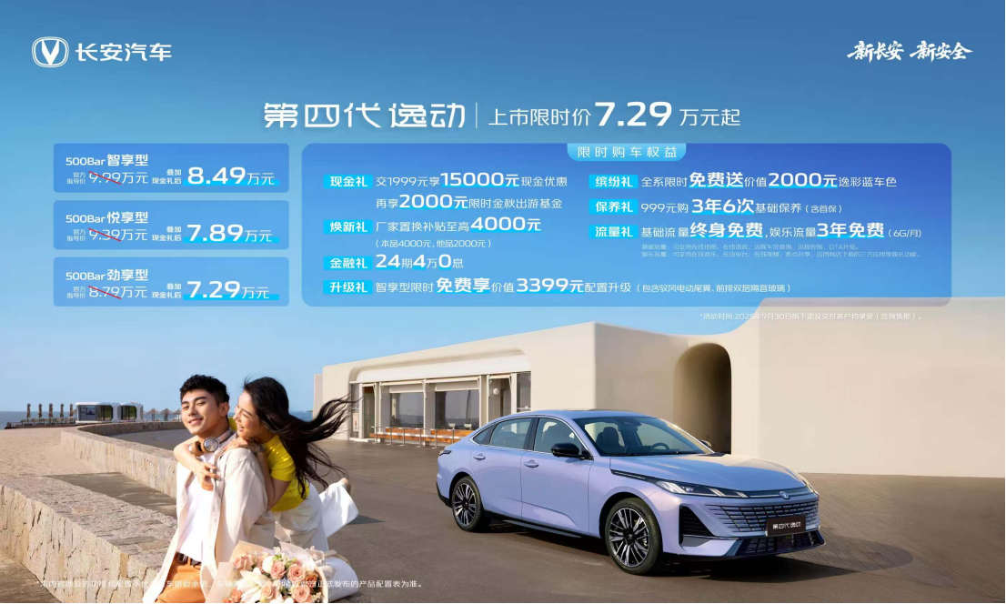 9月7日,在2025世界智能产业博览会长安科技生态大会上,长安汽车第四代逸动正式发布,以“全球智能家轿新标杆”之姿强势入局7万级市场。此次上市共推出500Bar劲享型、500Bar悦享型、500Bar智享型三款车型,官方指导价8.79万—9.99万元,叠加现金礼后限时价仅7.29万元起,更推出七重购车权益,为年轻家庭用户提供“入门即高配”的智能出行解决方案。上市13年,逸动已出口沙特、墨西哥、智利、埃及等全球101国,累计收获190万用户。乘联会最新数据显示,今年7月逸动位列全品牌轿车销量第25名;剔除新能源后,位居燃油轿车第7;在自主燃油轿车榜单更是一举夺魁。此次第四代逸动焕新而来,既是190万“逸粉”势能的延续,也是长安汽车“打造世界一流汽车集团”使命下的开篇之作。好看:纵横万象,一眼入魂全新“纵横万象”设计语言,0.78高宽比营造宽体低趴姿态;星能璀璨LED大灯、一线天贯穿式尾灯、17寸疾风轮毂,让7万元轿车也能拥有30万元级质感。好开:智慧新蓝鲸3.0,500Bar高压直喷全球首发500Bar高压直喷1.5T GDI发动机,最大功率130kW,峰值扭矩260N·m,0-100km/h加速7.9s,WLTC工况百公里油耗仅5.8L,动力媲美1.8T,油耗看齐混动。好智能:天枢座舱,同级最强大脑全系标配14.6英寸中控大屏+10.25英寸仪表,内置天枢OS(SDA OS),AI大模型语音接入DeepSeek,1100+语义免唤醒,可见即可说;支持CarPlay、HUAWEI HiCar等五大手车互联;同级唯一场景魔方,可自定义241项功能;无麦K歌、高德+百度双地图、256色氛围灯、50W无线快充等一应俱全,让“入门级”直接跃级“智能豪华”。好舒适:A+级空间,B级享受4730mm车长、1820mm车宽、2700mm轴距,后排膝部空间82mm,超越朗逸、轩逸;全车26处储物空间,500L超大后备厢,轻松装下5个24寸行李箱;全车座椅采用超纤零压云感材质,主驾6向电动+记忆,前排座椅加热,长途不累。好安全:全维真安全,入门即高配采用高强钢占比65%的笼式车身,标配6安全气囊;搭载IACC集成式自适应巡航、并线辅助、车道偏离预警、车道保持、智能远光灯、遥控垂直泊车等10项L2级智驾辅助,新手也能“老司机”。目前,第四代逸动已全面抵达长安汽车全国经销商门店。业内人士指出,其以“技术下放+价格颠覆”策略,不仅将加速合资品牌燃油车市场萎缩,更将推动中国品牌在全球智能家轿领域的话语权提升。长安汽车副总裁表示:“第四代逸动的使命,是让每个年轻家庭都能以经济型轿车的价格,享受中高端车型的智能体验。”随着“智能普及平权”浪潮的兴起,第四代逸动能否以“技术越级+价值碾压”重塑市场格局?答案值得期待。