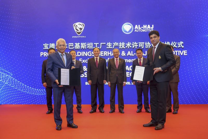 时值第二届“一带一路”国际合作高峰论坛召开之际,在马来西亚总理马哈蒂尔见证下,宝腾汽车与巴基斯坦阿吉哈汽车集团举行生产技术许可协议交换仪式,将在巴基斯坦卡拉奇建设海外全散装件组装工厂,加速宝腾进军南亚市场。同时宝腾汽车与中国建设银行举行融资文件交换仪式,将获得总额达18.88亿马币(折合约31亿人民币)的贷款,用于研发技改和工厂扩建投资。这是中国、马来西亚、巴基斯坦三方深入合作,打造的“一带一路”共建典范。中国驻马来西亚大使白天,马来西亚外交部长赛·夫丁,经济事务部长拿督阿兹敏,国际贸易工业部长达勒·雷京,交通部长陆兆福,中国建设银行副行长黄毅,吉利控股集团董事长李书福,DRB-HICOM集团总裁、宝腾汽车董事长萨义德,吉利控股集团常务副总裁、CFO李东辉等出席了仪式。海外工厂落户巴基斯坦 宝腾复兴再破局巴基斯坦是世界第六大人口国家。作为南亚市场首个门户基地,巴基斯坦在全球市场布局上具有重要战略意义。按照协议,预计到2020年底,首批在巴基斯坦工厂生产的宝腾汽车将上市。三年内将为当地创造2000个直接就业机会,陆续带动20,000个间接工作机会。马哈蒂尔总理在当天举行的第二届“一带一路”国际合作高峰论坛开幕式上说,“我全力支持‘一带一路’建设,相信马来西亚能够从中获益。”马哈蒂尔总理对吉利与宝腾的合作一直给予高度关注和支持,此次现身宝腾重要仪式现场,特别会见了宝腾的中国和马来西亚供应商代表,他热情邀请中国优秀供应商到马来西亚发展,不断提高宝腾本地化能力。 他表示:宝腾和吉利合作后,已经显示出巨大的技术优势,我已经开过宝腾新车X70,我发现这是一款非常好的车,它可以和世界上最好的车相提并论。吉利非常关注质量,我相信吉利和宝腾之间的合作一定会取得丰硕的成果,宝腾汽车一定能远销全球。高质量产品取决于高质量的零部件,我们希望广大零部件供应商,帮助我们实现伟大梦想。吉利控股集团董事长李书福表示:”吉利和宝腾是长期战略合作,致力于推动双方协同发展,我们一定要抓住汽车产业新能源和智能化转型的契机,把最好的技术和产品带到马来西亚,全面提升宝腾本土创新能力、零部件配套体系建设和员工专业技能水平,寻求资源协同和规模化效应,加速宝腾品牌转型升级和国际化进程。”DRB-HICOM集团总裁、宝腾汽车董事长萨义德表示:“近一年多来,我们取得的成功已经表明宝腾走在正确的发展道路上。此次两项合作协议的交换,将成为国际贸易的一个重要里程碑,是双方参与“一带一路”建设的重要成果,我们也希望以此推动三国汽车工业协同发展。” 充分整合全球资源 协同效应成绩斐然2017年5月24日,吉利控股集团与马来西亚DRB-HICOM 集团签署协议,收购宝腾汽车有限公司49.9%的股份。2017年9月29日,双方正式完成股权交割。此后,吉利开始全面负责宝腾汽车的管理运营,双方本着使宝腾成为马来西亚的第一品牌,并在十年内使其进入东盟前三大品牌行列的共同目标,围绕人才、渠道、成本、质量、产业链、工厂改造以及开发新产品等七方面制定宝腾品牌全面复兴的“北斗七星”战略。合作近两年来,协同效应初见成效,宝腾的研发能力、产品品质和市场竞争能力不断提升。2018年12月12日,吉利和宝腾共同开发的首款车型宝腾X70在马来西亚首都吉隆坡上市,马来西亚市场反馈良好,累计获得订单2.5万辆,交付超过1万辆,连续3个月成为马来西亚最畅销的SUV车型。此外,吉利控股集团不断整合全球资源,输出产品、技术、管理的同时,秉承尊重、适应、包容、融合的全球型企业文化,不断强化宝腾汽车的软实力,助推宝腾开拓海内外市场,加速宝腾品牌转型升级和国际化进程。“一带一路”指引 加速宝腾全球复兴2013年9月和10月,中国国家主席习近平分别提出建设“新丝绸之路经济带”和“21世纪海上丝绸之路”的合作倡议,得到了各方持续的积极响应,5年多来取得了明显成效。在“一带一路”伟大倡议指引下,吉利控股集团抓住机遇,深化海外布局,与瑞典、英国、马来西亚、白俄罗斯等国汽车产业协同发展,在“共商、共建、共享”的前提下,做大做强中国、英国、马来西亚等国家汽车产业。其中入股宝腾,就是吉利“一带一路”南线布局的重要战略举措。此次宝腾海外工厂项目在巴基斯坦落地,预示着中国、马来西亚和巴基斯坦三国之间将形成汽车制造产业的深度合作关系,加速宝腾品牌的国际化进程,带动三国供应链协同发展。而中国建设银行向宝腾提供18.8亿马币贷款也将进一步促进宝腾加速研发技改和工厂建设,加快全球复兴之路。此外,吉利还将在中国与马来西亚之间架起经贸往来的桥梁,双方优秀的相关产业链企业将会借此打开更广阔的市场,探索“一带一路”倡议的可持续性发展。