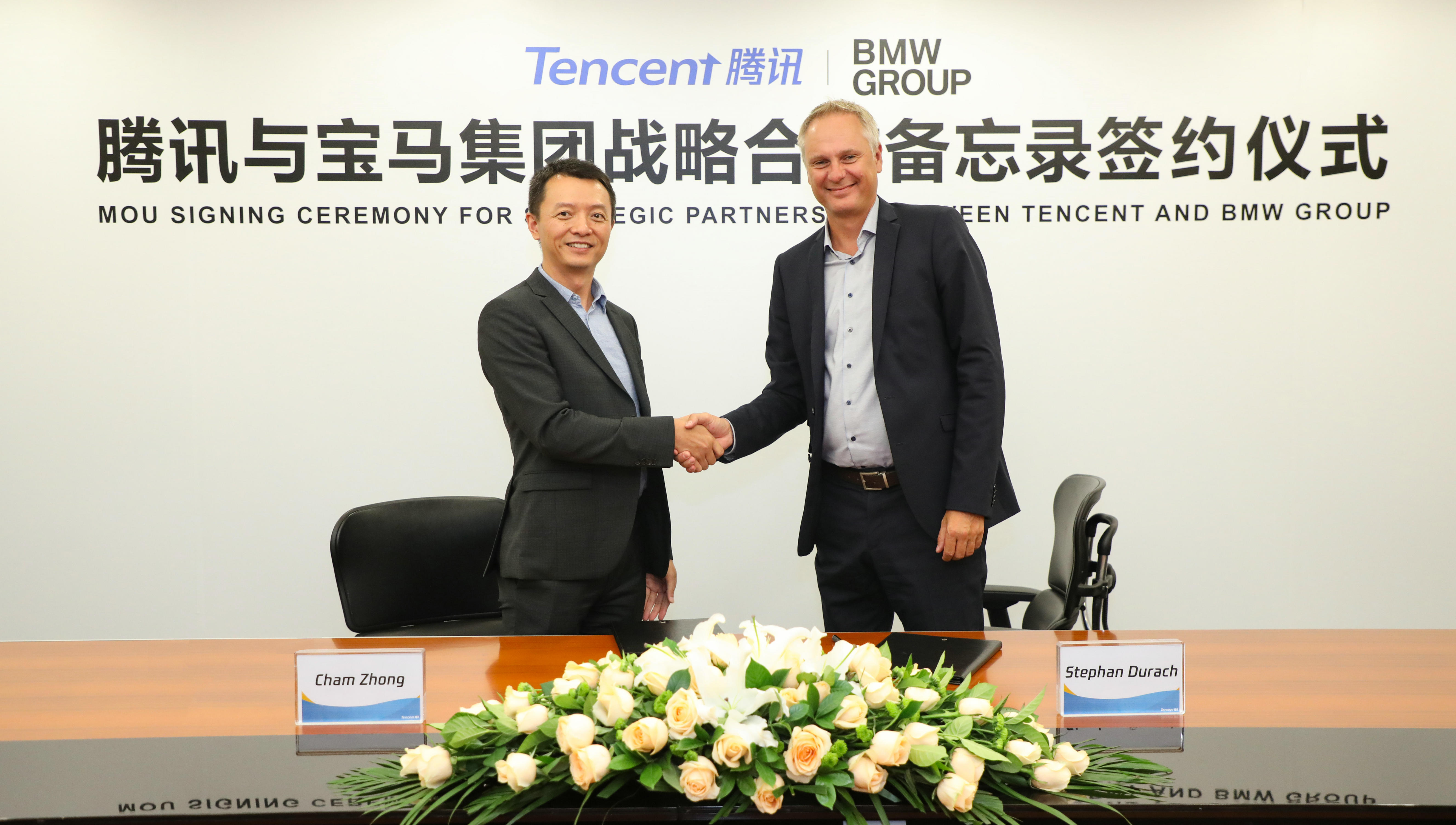 腾讯集团与宝马集团今天宣布,双方签署了一份战略合作备忘录,两家公司将在数字服务和技术方面探索合作项目。这份合作备忘录的签署,标志着宝马集团与腾讯集团在数字化交通出行方面,将开启一段全新的合作伙伴关系,双方将一起致力于为中国消费者带来安全、便捷和智能的出行体验。根据这份备忘录的内容,宝马集团和腾讯集团将共同评估腾讯数字产品和服务与宝马集团车机端和手机端数字平台的整合。双方还计划探讨在信息娱乐和服务、底层基础架构、安全等领域的潜在合作机会。腾讯董事会主席兼首席执行官马化腾曾表示,在与汽车行业合作伙伴的合作中,腾讯将为合作伙伴提供最有效的数字接口、最丰富的数字工具箱,携手合作伙伴共建数字生态,推动智能产业的创新与发展,希望在汽车上实现人与各种服务的智能连接。宝马集团大中华区总裁兼首席执行官高乐表示:“汽车行业正在向数字化和互联化方向转型,而中国将在这一进程中发挥关键作用。汽车行业和科技行业之间的强强联手,对于实现智能化的移动出行至关重要。宝马集团将用自身的专业技术和资源,携手中国创新力量和行业翘楚协同发展,创造双赢。通过与腾讯开展合作,宝马将加快为中国客户建立无缝数字生态系统的进程。”“自2013年以来,宝马集团作为腾讯重要的全球合作伙伴,双方已经在汽车安全、在线音乐和定位服务等方面开展了合作。今后,双方将继续深化合作,共同创造车内和车外一体化的数字体验。” 腾讯副总裁钟翔平表示:“我们希望凭借技术和数据的不断积累,生态体系的不断完善,助力汽车行业智能网联化发展,让更多车主享受科技带来的便捷和乐趣。”宝马集团一直是汽车行业数字化转型的先驱。尤其是在智能互联领域,宝马已经积累了超过20年的经验。智能互联和数字服务,以及自动驾驶和电动出行,是宝马集团“全新第一战略”的关键发展方向。中国在宝马的全球版图中占据着越来越重要的位置。宝马将充分利用中国的竞争优势,携手中国的科技巨擘和创新型初创企业,加速转型为一家提供高档出行服务的科技公司。腾讯集团认为,在万物互联的智能化时代,汽车已不仅仅是人们日常出行代步的交通工具,而是演变为像智能手机一样随时可以移动的数字化智能终端,并不断发展为融合出行、旅游、消费、商务等多种场景的智能化载体。因此,互联网企业携手汽车厂商,可以更好实现人与车、车与车、车与新型基础设施的连接,为用户提供更好的汽车移动生活。腾讯在安全、内容、大数据、云和AI方面的积累,已经构成腾讯智能车联服务平台的核心能力支撑,构建了面向AI时代的汽车智联生态平台。