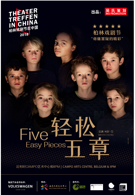 大众汽车集团(中国)连续三年倾力支持“柏林戏剧节”开启中国之行,今年将携手吴氏策划为中国观众呈现一部来自德国顶级戏剧盛会的优秀先锋戏剧作品。由中德戏剧专家组成的评审委员会从诸多经典作品中挑选出的演出剧目《轻松五章》将于7月在中国首演。此外,在大众汽车集团(中国)的持续支持下,歌德学院将再次举办剧目导赏、演后谈、剧目放映以及中德戏剧人对话等一系列文化活动,旨在进一步加强中德文化交流,巩固两国友好关系。大众汽车集团管理董事会成员、大众汽车集团(中国)总裁兼CEO海兹曼教授表示:“对于大众汽车而言,文化艺术一直是连结我们与中国社会的重要纽带。自2016年起,大众汽车集团(中国)与德国最负盛名的‘柏林戏剧节’展开合作,持续将全球备受推崇的戏剧作品带给中国观众。”大众汽车集团(中国)文化活动的核心是“PACE”文化战略。“PACE”意为参与(Participation)、互联(Connection)、教育(Education)和交流(Exchange)。在这一战略指引下,大众汽车集团(中国)推出了包括“柏林戏剧节在中国”在内的多项新颖而激动人心的文化活动,积极与公众互动并拓展文化教育渠道。通过“PACE”文化项目,大众汽车集团(中国)不断支持和促进中国社会发展,并继续为未来的互相交流搭建桥梁。2016年及2017年,“柏林戏剧节在中国”先后为观众呈现了多部经典作品,如《他她它》、《等待戈多》以及《约翰•盖勃吕尔•博克曼》等,获得了全国观众的广泛好评。在过去两年中,“柏林戏剧节在中国”吸引了逾2万名观众走进剧场,约970万观众参与了线上互动。在往届大获成功的基础上,2018年“柏林戏剧节在中国”将在三个城市为中国观众带来由瑞士著名戏剧导演米罗•劳导演的作品《轻松五章》。该剧围绕几个8至14岁青少年的不幸经历展开,选取了比利时恶名昭彰的罪犯传记来刻画比利时简史,并在舞台上反思了对于人类情感的呈现以及再现。7月3日至4日,《轻松五章》的中国巡演将从天津大剧院开启,此后分别在7月7日至8日以及7月12日至13日期间于北京天桥艺术中心和江苏常州大剧院进行展演。