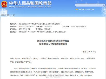 教育部今天发布《关于深化本科教育教学改革全面提高人才培养质量的意见》,围绕学生忙起来、教师强起来、管理严起来、效果实起来,深化本科教育教学改革。坚决取消“清考”行为体育不合格不能毕业《意见》要求,严把考试和毕业出口关。完善过程性考核与结果性考核有机结合的学业考评制度,综合应用笔试、口试、非标准答案考试等多种形式,科学确定课堂问答、学术论文、调研报告、作业测评、阶段性测试等过程考核比重。加强考试管理,严肃考试纪律,坚决取消毕业前补考等“清考”行为。《意见》特别指出,加强学生体育课程考核,不能达到《国家学生体质健康标准》合格要求者不能毕业。科学合理制定本科毕业设计(论文)要求,严格全过程管理,严肃处理各类学术不端行为。落实学士学位管理办法,健全学士学位管理制度,严格学士学位标准和授权管理,严把学位授予关。完善学分制以学分积累作为学生毕业标准《意见》提出,支持高校进一步完善学分制,扩大学生学习自主权、选择权。支持高校建立与学分制改革和弹性学习相适应的管理制度,加强校际学分互认与转化实践,以学分积累作为学生毕业标准。完善学分标准体系,严格学分质量要求,建立学业预警、淘汰机制。学生在基本修业年限内修满毕业要求的学分,应准予毕业;未修满学分,可根据学校修业年限延长学习时间,通过缴费注册继续学习。推行辅修专业制度开展双学士学位人才培养试点《意见》指出,逐步推行辅修专业制度,支持学有余力的全日制本科学生辅修其它本科专业。高校应研究制定本校辅修专业目录,辅修专业应与主修专业归属不同的专业类。原则上,辅修专业学生的遴选不晚于第二学年起始时间。辅修学士学位在主修学士学位证书中予以注明,不单独发放学位证书。《意见》同时指出,支持符合条件高校开展双学士学位人才培养项目试点。试点须报省级学位委员会审批通过后,通过高考招收学生。试点所依托的学科专业应具有博士学位授予权,且分属两个不同的学科门类。本科毕业并达到学士学位要求的,可授予双学士学位。双学士学位只发放一本学位证书,所授两个学位应在证书中予以注明。实施联合学士学位培养项目协同提升人才培养质量《意见》提出,支持高校实施联合学士学位培养项目。该项目相关高校均应具有该专业学士学位授予权,通过高考招收学生。实施高校要在充分论证基础上签署合作协议,联合制定人才培养方案,加强学生管理和服务。联合学士学位证书由本科生招生入学时学籍所在的学士学位授予单位颁发,联合培养单位可在证书上予以注明,不再单独发放学位证书。高等学历继续教育不得开展授予联合学士学位工作。高校可设置流动岗位 教师可多点教学并获得报酬《意见》提出,高校可根据需要设立一定比例的流动岗位,加大聘用具有其它高校学习和行业企业工作经历教师的力度。推行高校教师职务聘任制改革,加强聘期考核,准聘与长聘相结合,做到能上能下、能进能出。高校教师经所在单位批准,可开展多点教学并获得报酬。引导高校建立兼职教师资源库,开展兼职教师岗前培训,为符合条件的兼职教师、急需紧缺人才申报相应系列专业技术职务。落实教授全员为本科生上课 健全助教岗位制度《意见》特别强调,要切实落实教授全员为本科生上课的要求,让教授到教学一线,为本科生讲授基础课和专业基础课,把教授为本科生的授课学时纳入学校教学评估指标体系。《意见》还对建立健全助教岗位制度作出规定,要求完善选拔、培训、评价、激励和反馈的全流程助教岗位管理制度。新入职教师承担的助教工作应纳入教师工作量考核,对于表现优秀的应在职称评聘、职务晋升中予以优先考虑。加强对担任助教工作学生的岗前培训和规范管理,合理确定补贴标准,提供必要条件保障,确保教学工作质量。